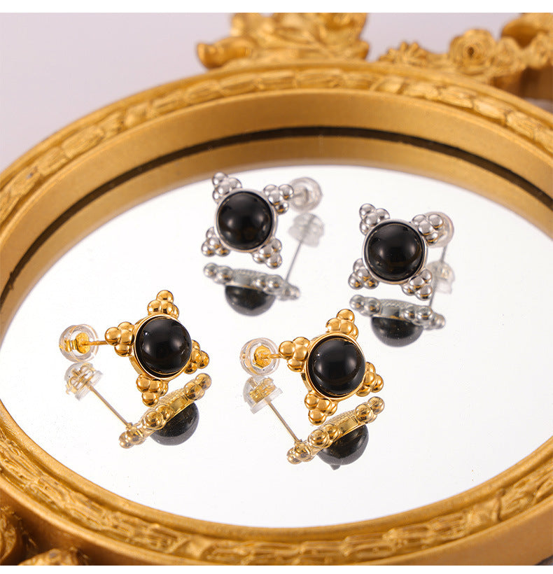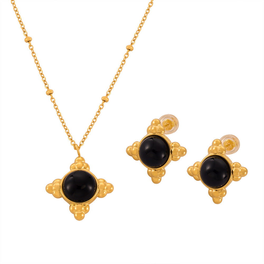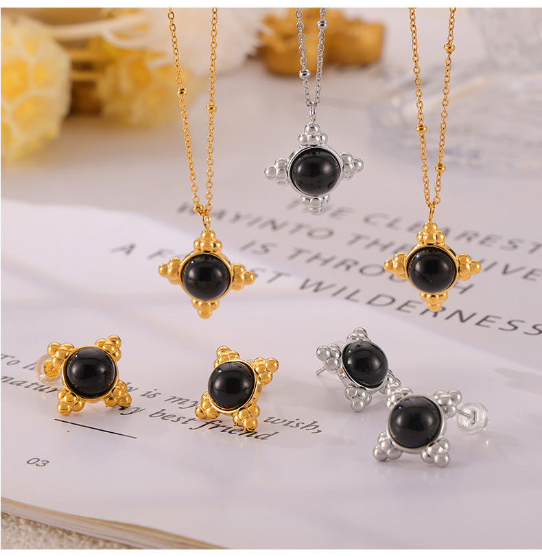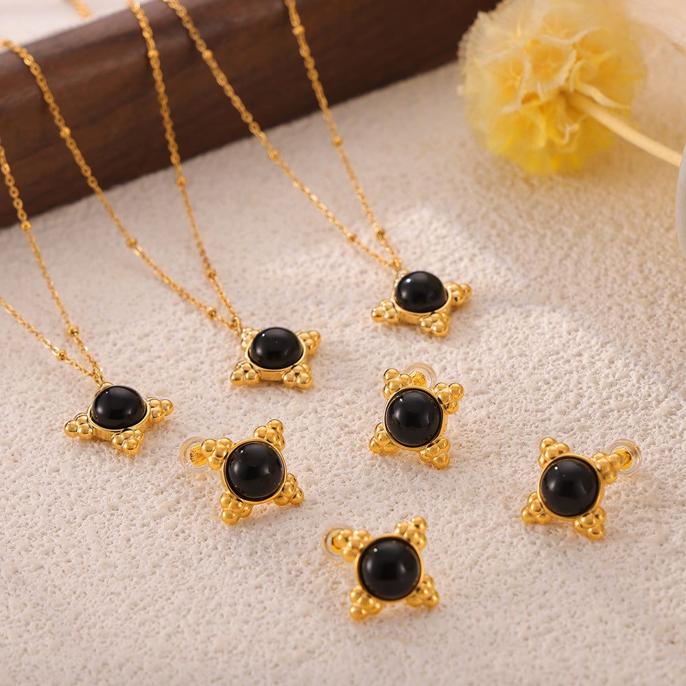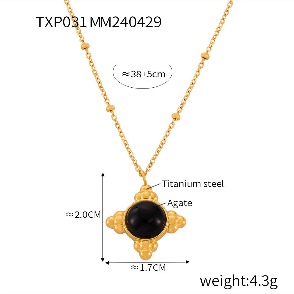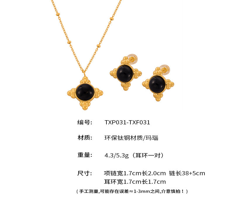 B廠【P031-F031】法式簡約日常黑瑪瑙吊墜女古風新品鈦鋼鍍金項鍊小眾設計飾品套裝 24.05-1