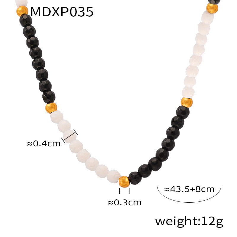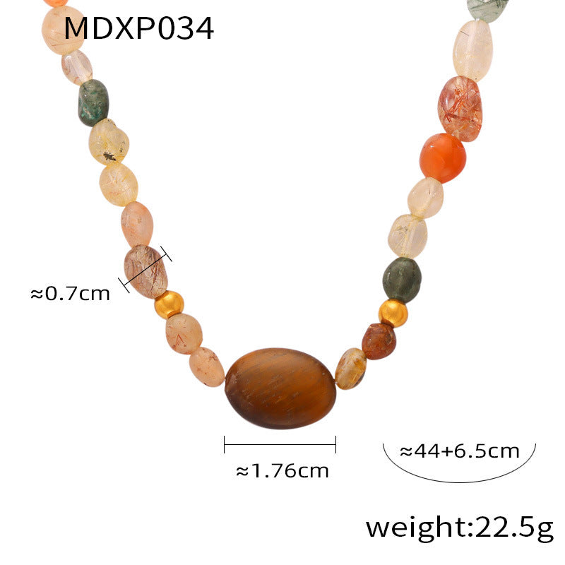 B廠【P033-35】法式新款時尚復古輕奢天然石瑪瑙吊墜不規則手工串珠鈦鋼鍍金項鍊 24.03-3