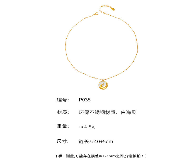 B廠【P035】歐美跨境浮雕鳳凰內鑲嵌白海貝吊墜鎖骨項鍊不鏽鋼鍍18k真金飾品 26.02-1