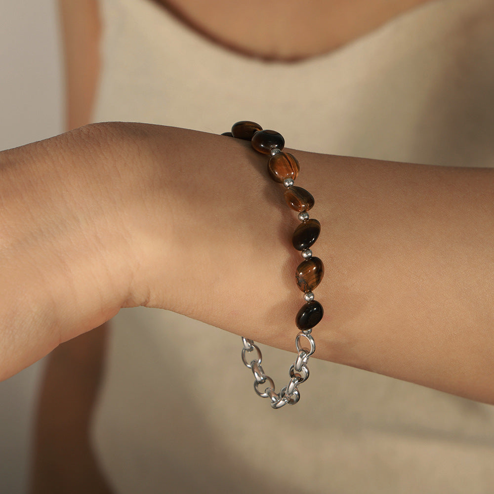 B廠【P041-E016】美拉德風天然虎眼石手鍊小眾復古手工串珠拼接o字鏈情侶首飾套裝 24.01-3