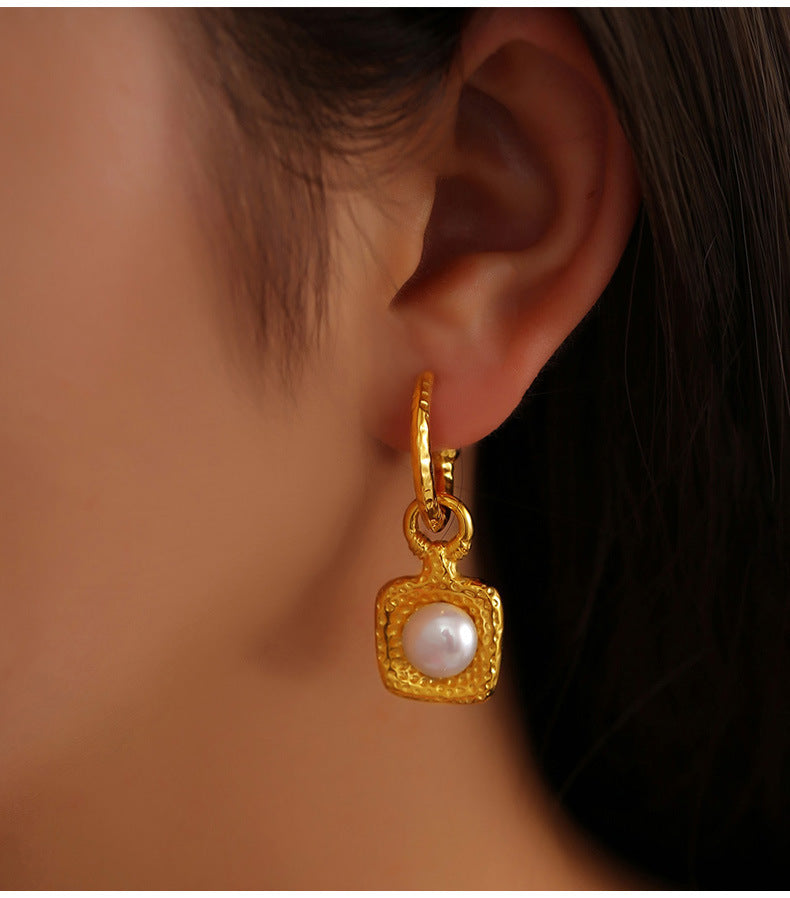 B廠【P048】法式vintage貝珠方形個性飾品復古文藝簡約百搭小眾設計鈦鋼套裝 24.05-5