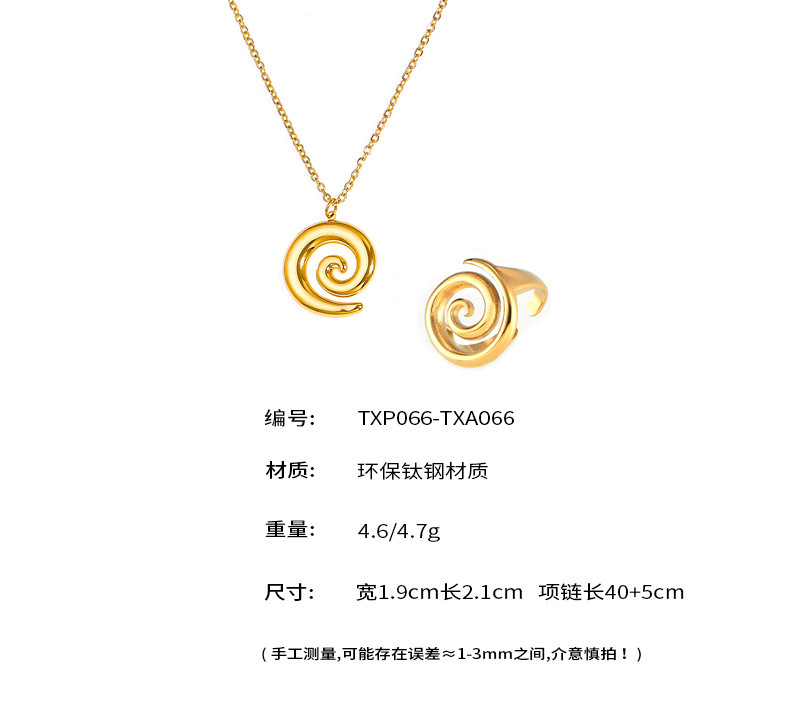 B廠【P066】歐美跨國個性簡約時尚螺旋造型吊墜項鍊戒指鈦鋼鍍18k金首飾套裝 24.07-2
