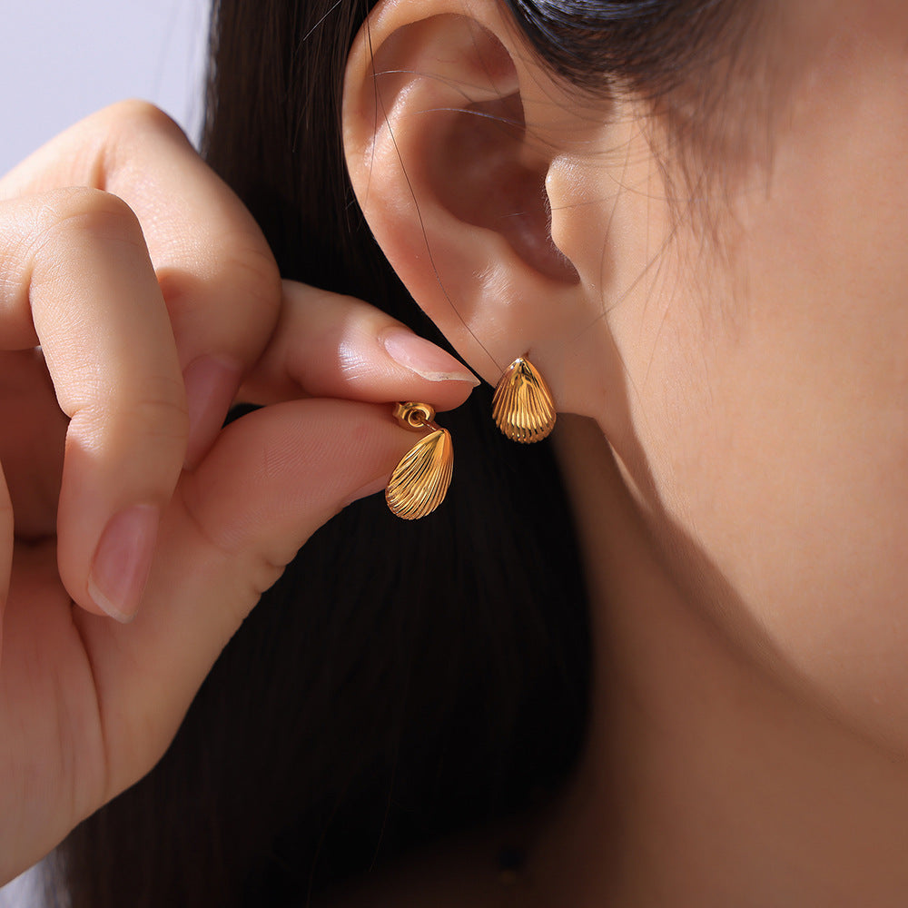 B廠【P075】法式復古高級海星貝殼吊墜氣質藍晶項鍊耳環輕奢套裝鈦鋼鍍18k金 24.07-4