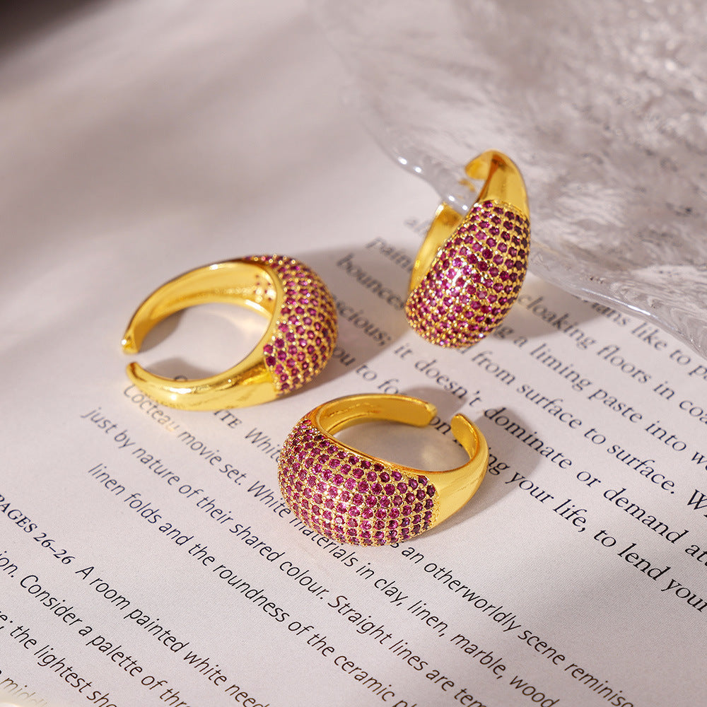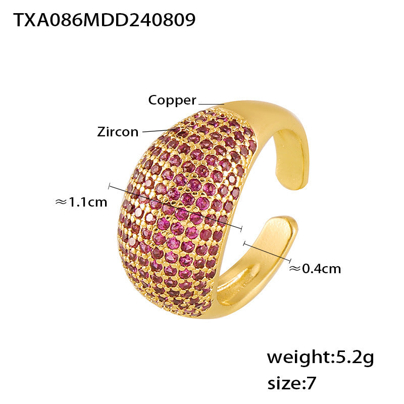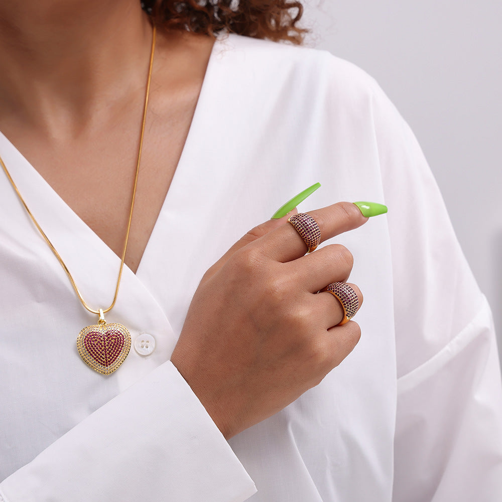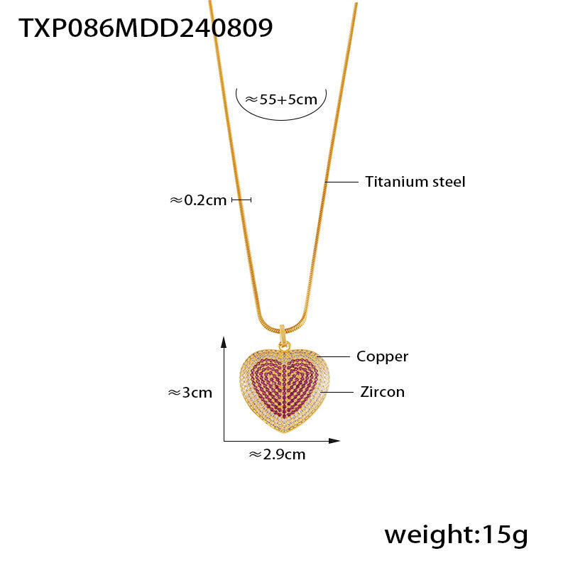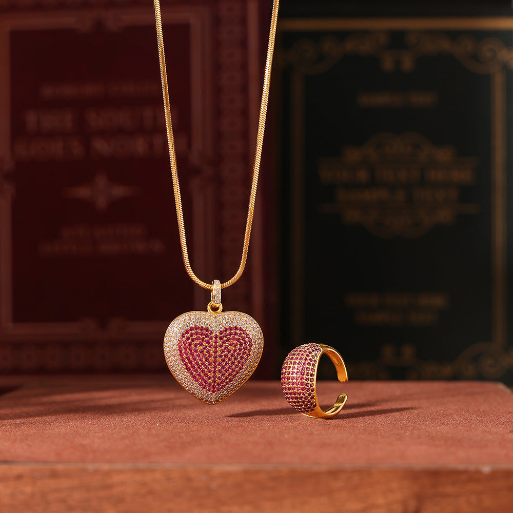 B廠【P086】歐美chic風跨境新款愛心吊墜鈦鋼項鍊開口戒指鑲滿鋯石銅鍍18k金 24.08-3