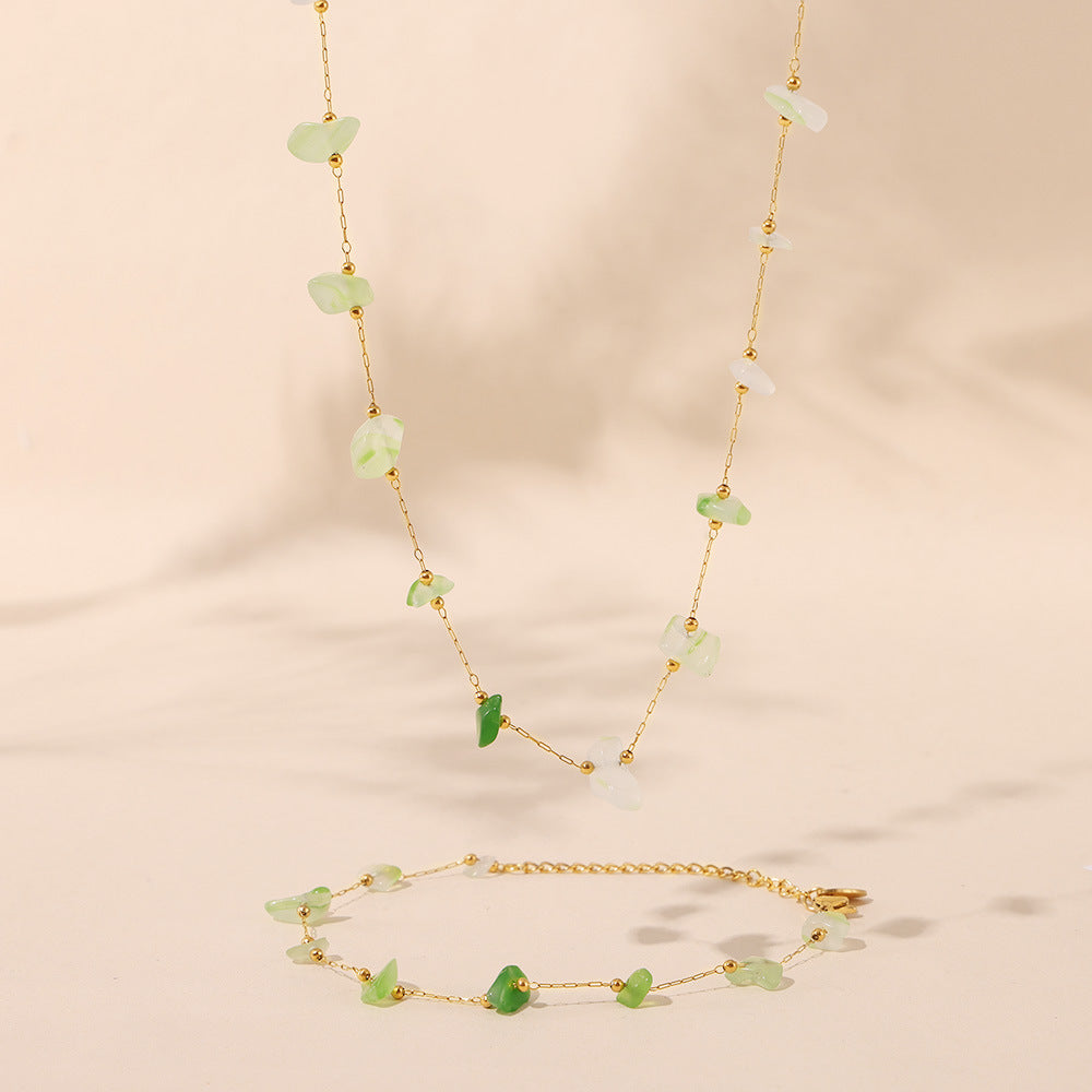 B廠【P099】法式天然碎石鎖骨項鍊手鍊小清新甜美不銹鋼手工鍊ins風女式套裝 24.08-5