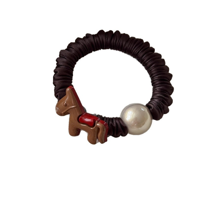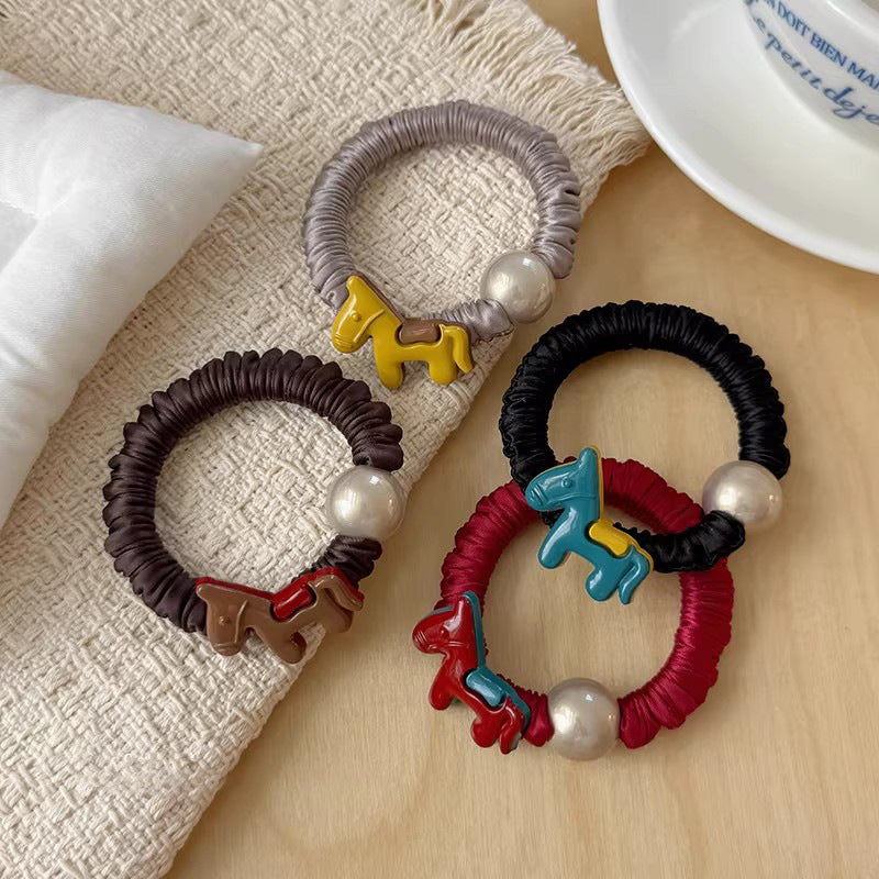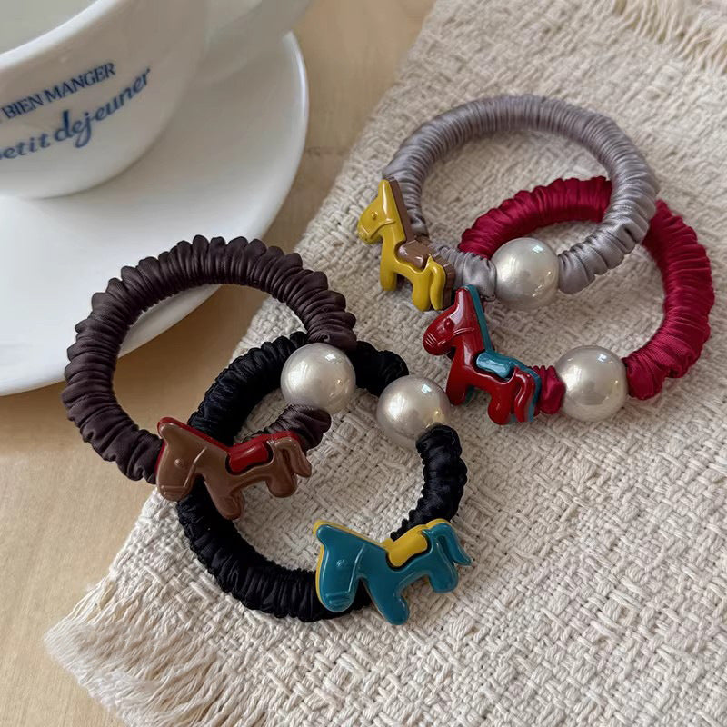 C廠【P100】高級感褶皺小腸髮圈女小馬仿珍珠頭繩高彈性橡皮筋紮馬尾髮繩髮飾 26.01-1