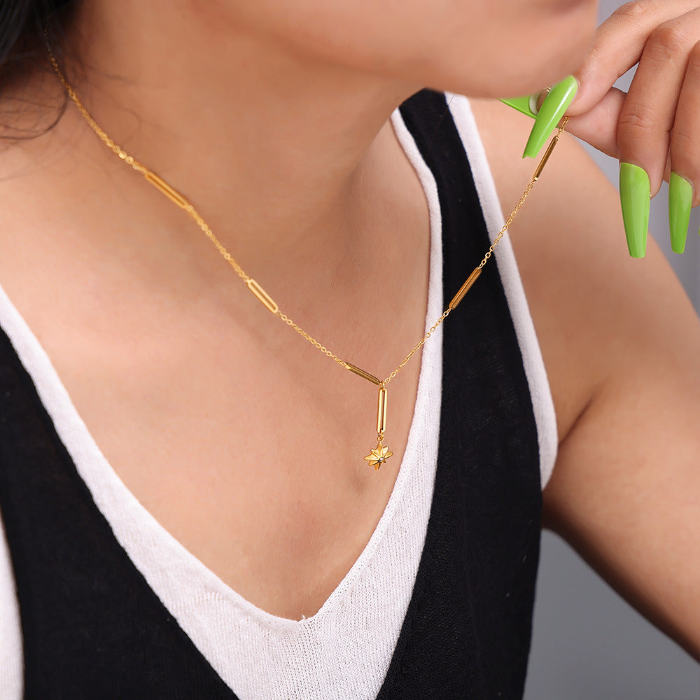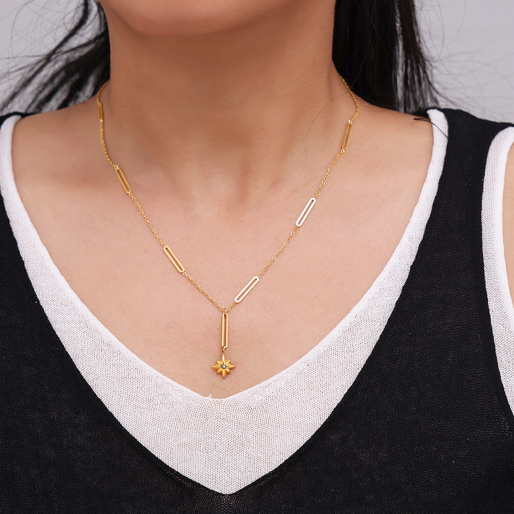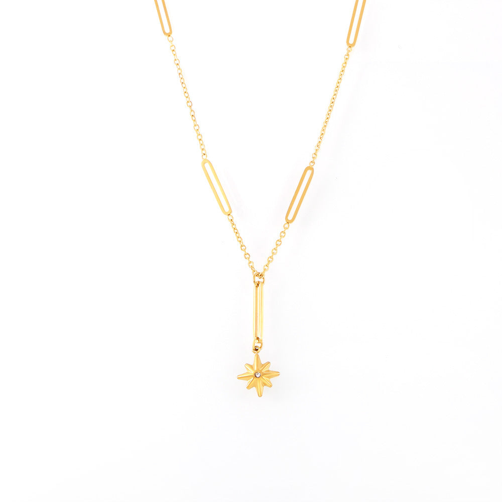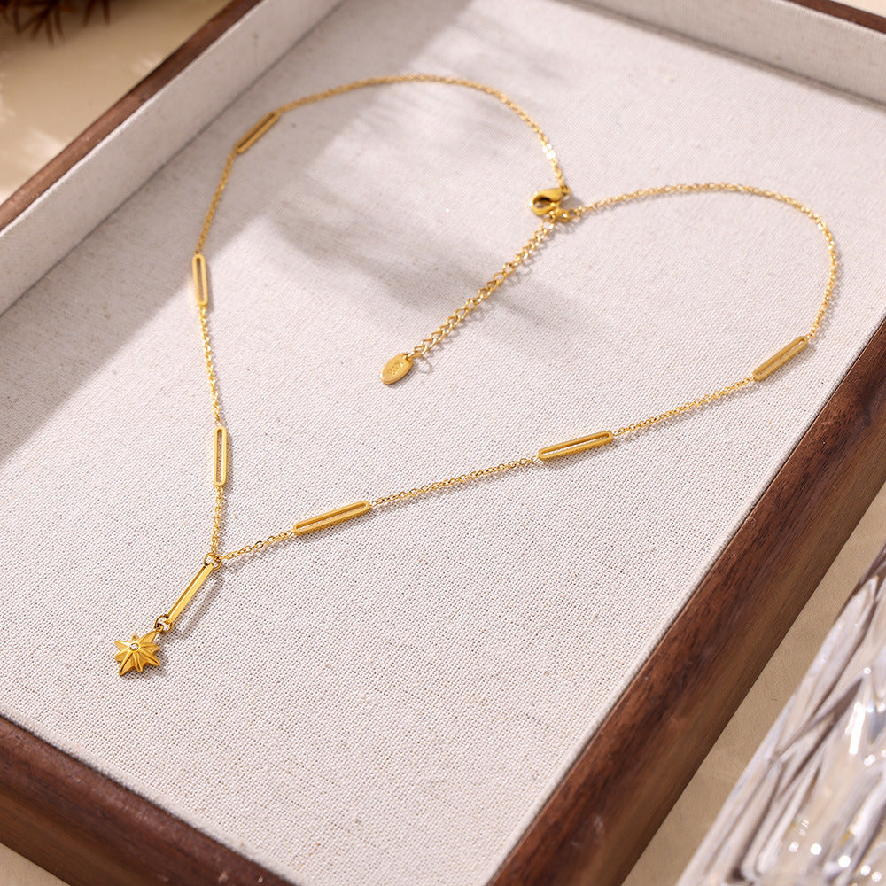 B廠【P1000】新款簡約米字鑲鑽吊墜ins八芒星項鍊女小眾輕奢設計感鈦鋼鎖骨鏈 24.08-3