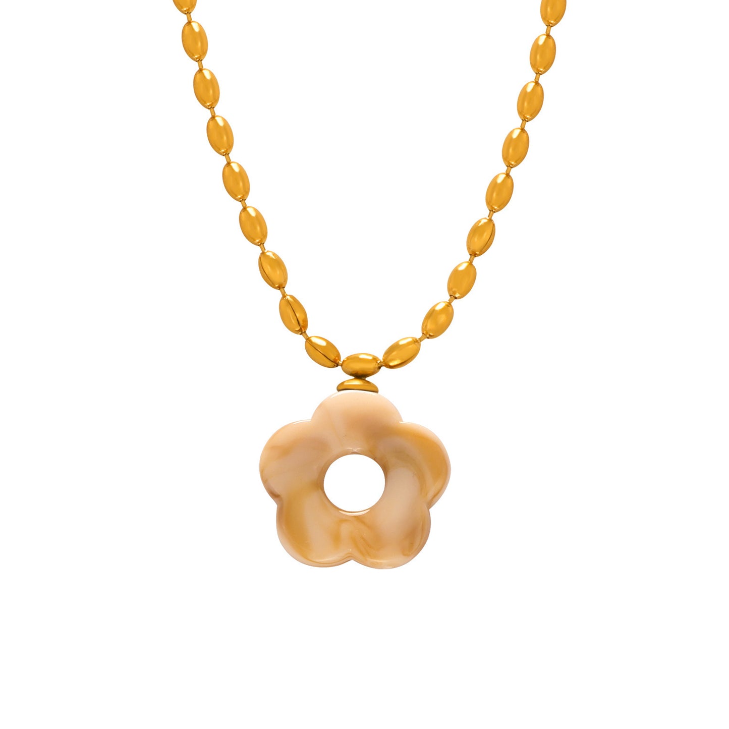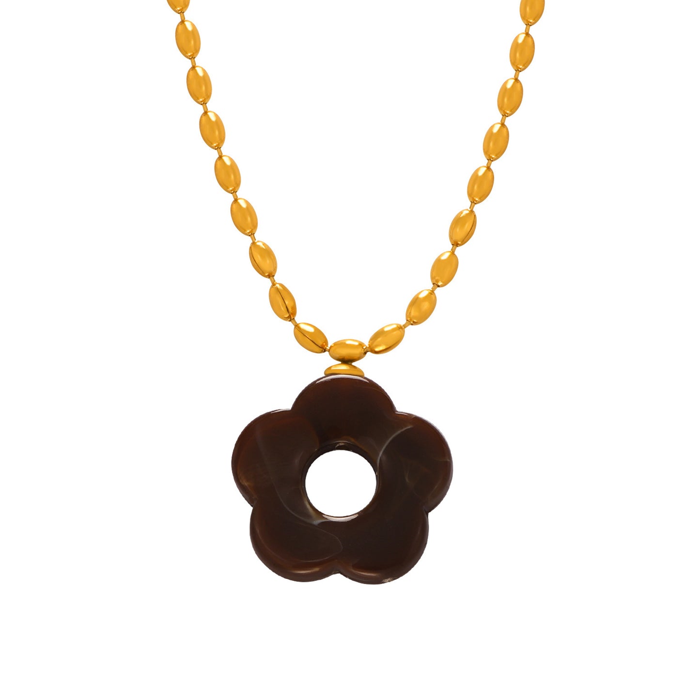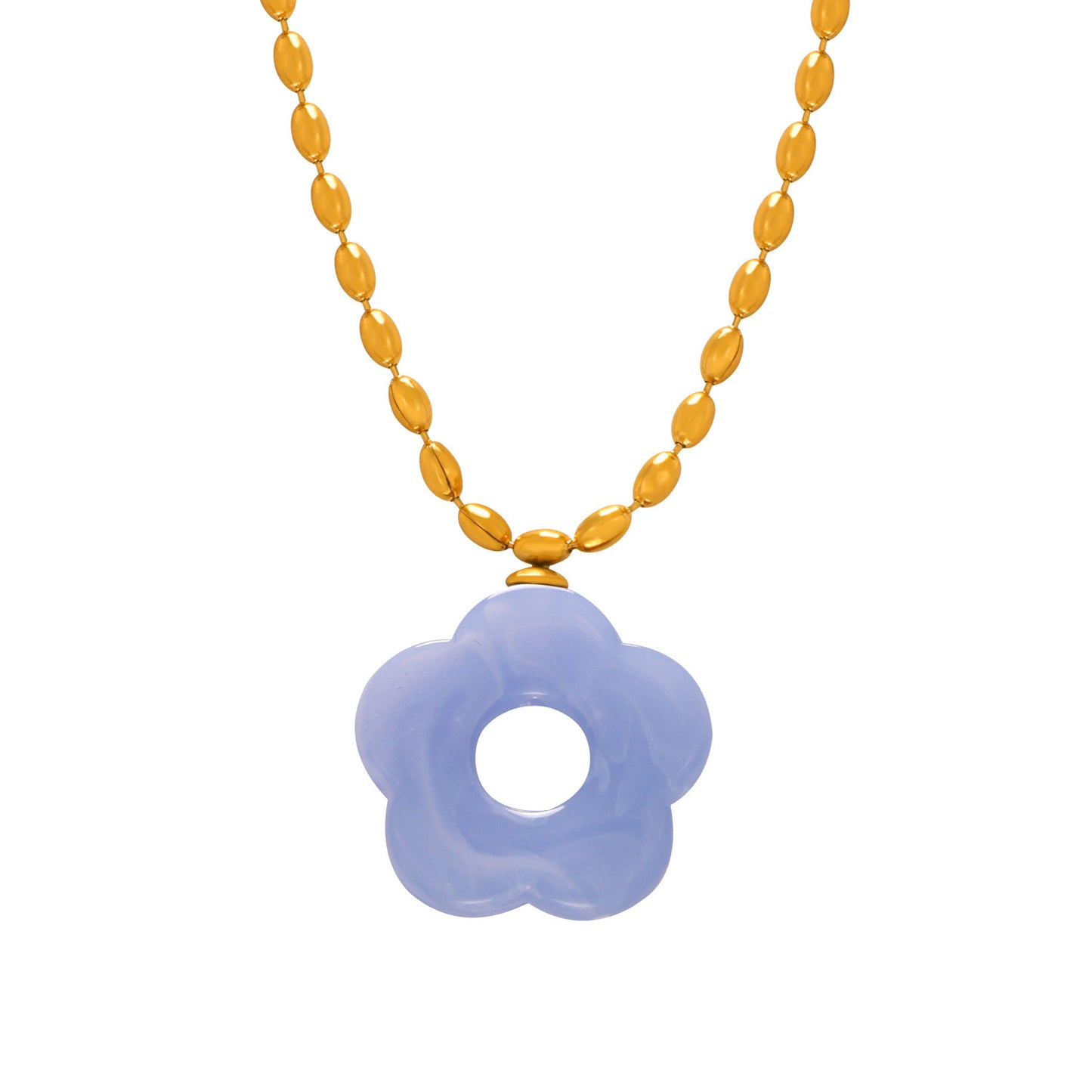 B廠【P103-F107】日韓新款小清新簡約甜美時尚鈦鋼鍍金鏈條花朵樹脂吊墜項鍊飾品女 24.03-3