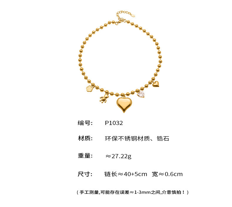 B廠【P1032】不鏽鋼鋯石大愛心小熊DIY多配件空心項鍊鍍18K真金珠寶首飾 25.10-3