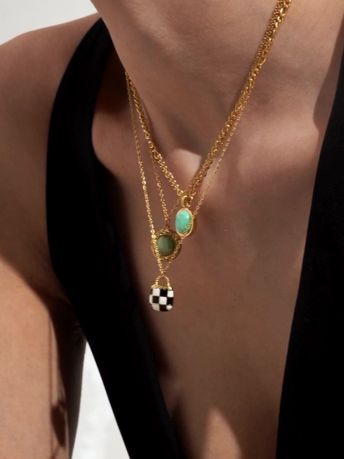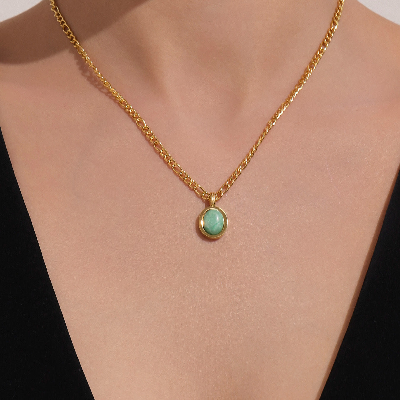 B廠【P1034】砝碼彩釉天然石吊墜不鏽鋼鏈條項鍊個性簡約風時尚百搭飾品 25.08-2