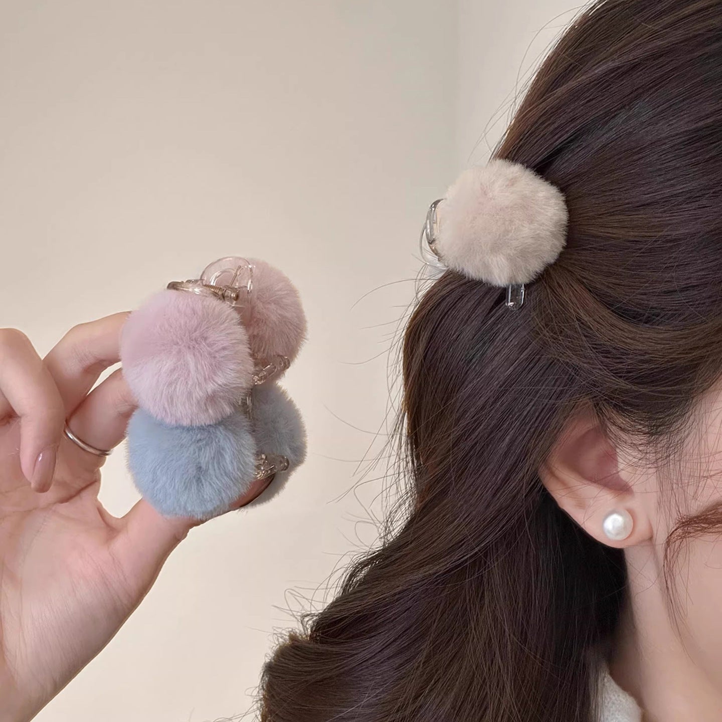 C廠【P107】可愛毛絨球球髮夾女2025新款秋冬甜美公主頭小號抓夾氣質髮卡頭飾 26.01-1「C廠-單筆結帳需滿,NT$500出貨(不含運費)」