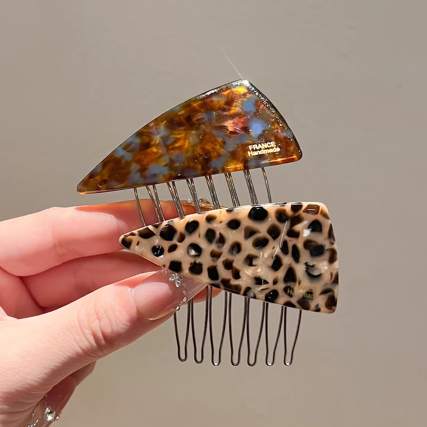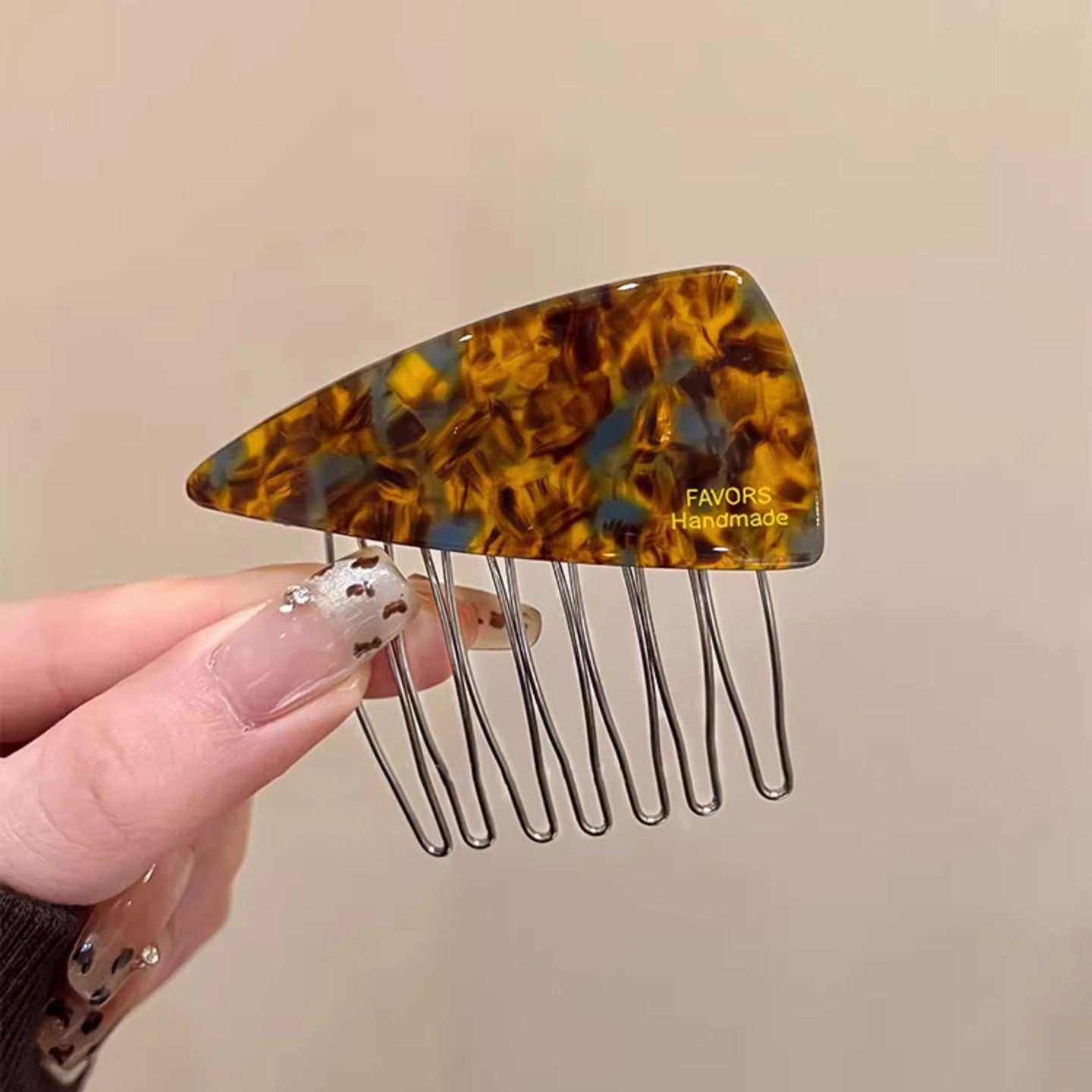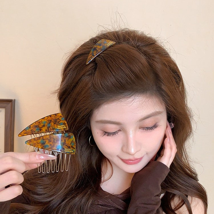 C廠【P111】醋酸藍棕三角髮梳髮夾女側邊碎髮瀏海夾高顱頂倒插梳新款百搭髮飾 26.04-3