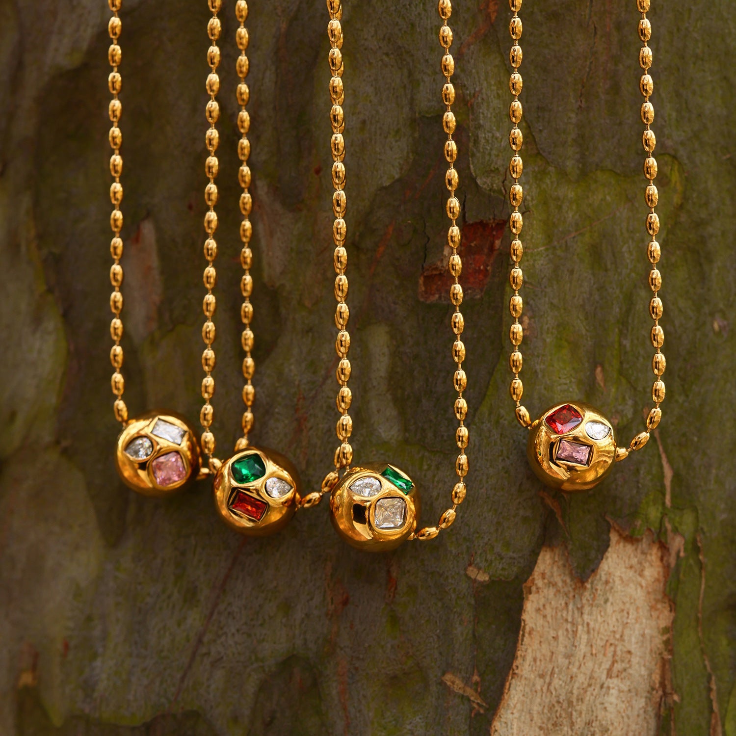 B廠【P1110】歐美飾品不鏽鋼圓珠鑲捷克水鑽吊墜米珠鎖骨項鍊PVD鍍18k金 25.04-2