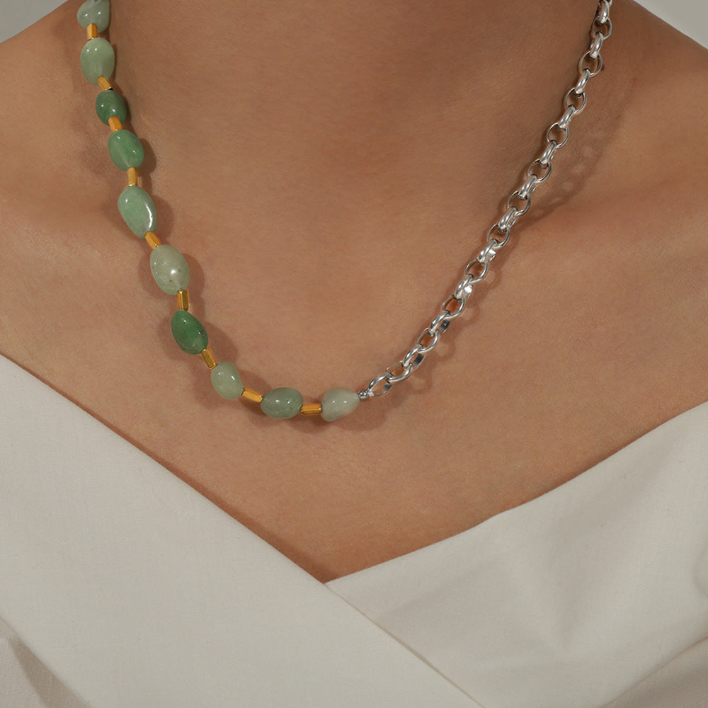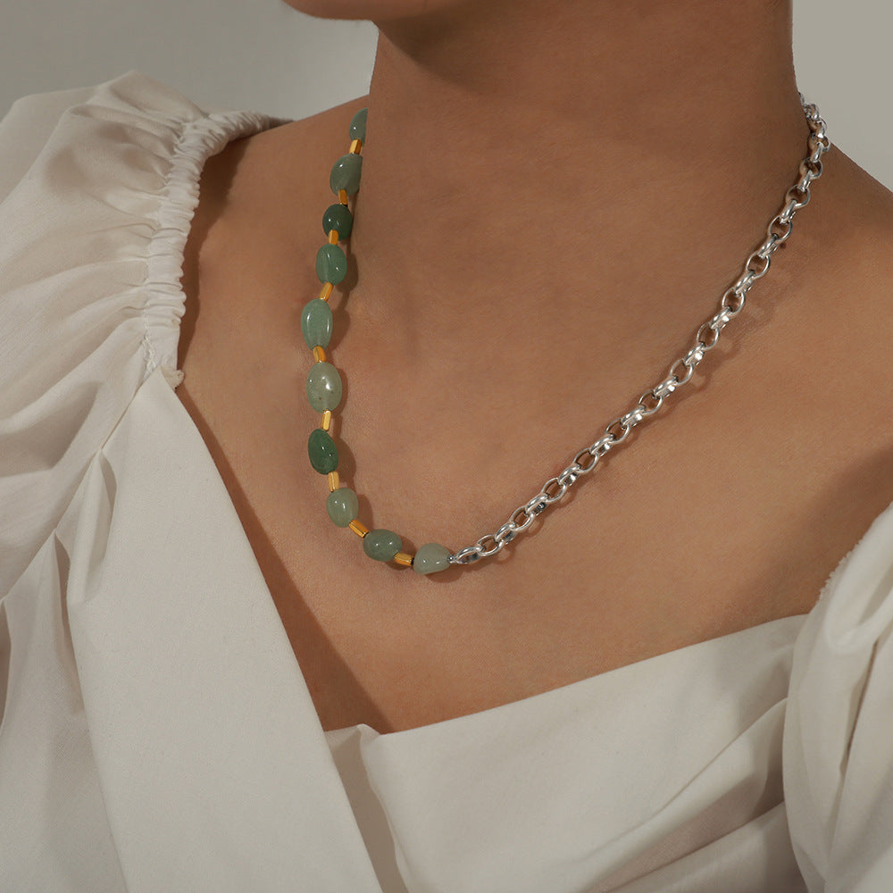 B廠【P125】多巴胺復古輕奢鎖骨鏈小眾設計彩色天然石串珠拼接鈦鋼0字鏈項鍊 24.01-3