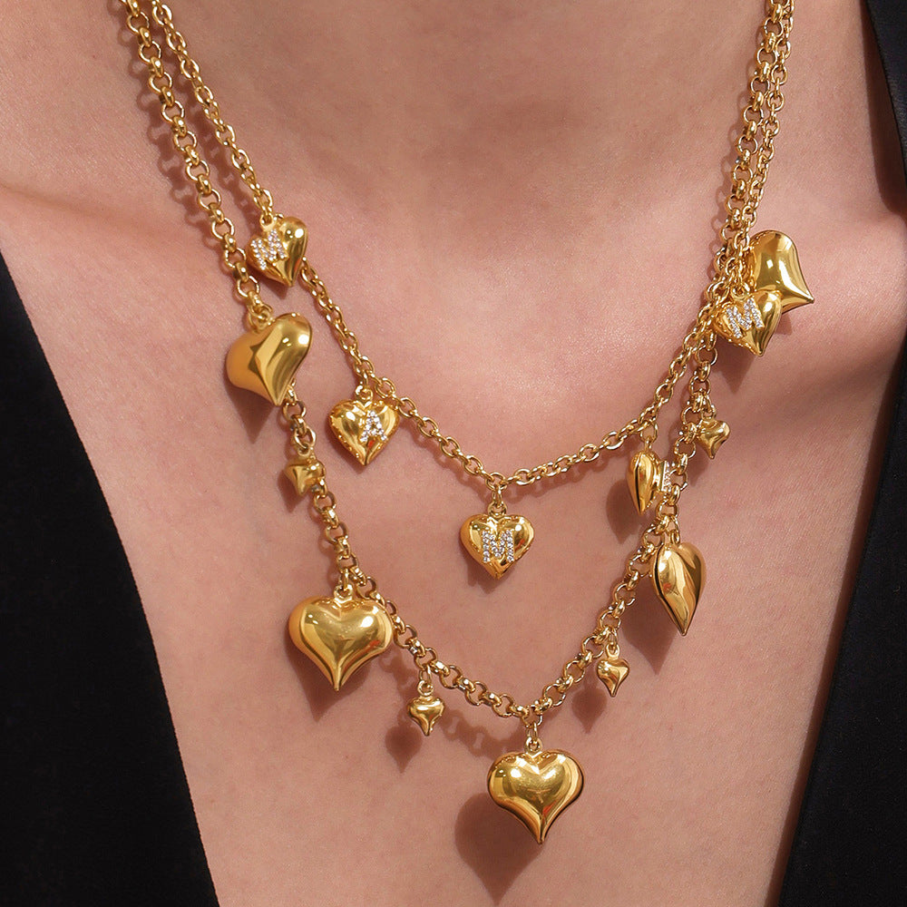 B廠【P1295】超閃5A鋯石字母愛心項鍊跨國時尚新款飾品不鏽鋼材質不掉色 25.08-1