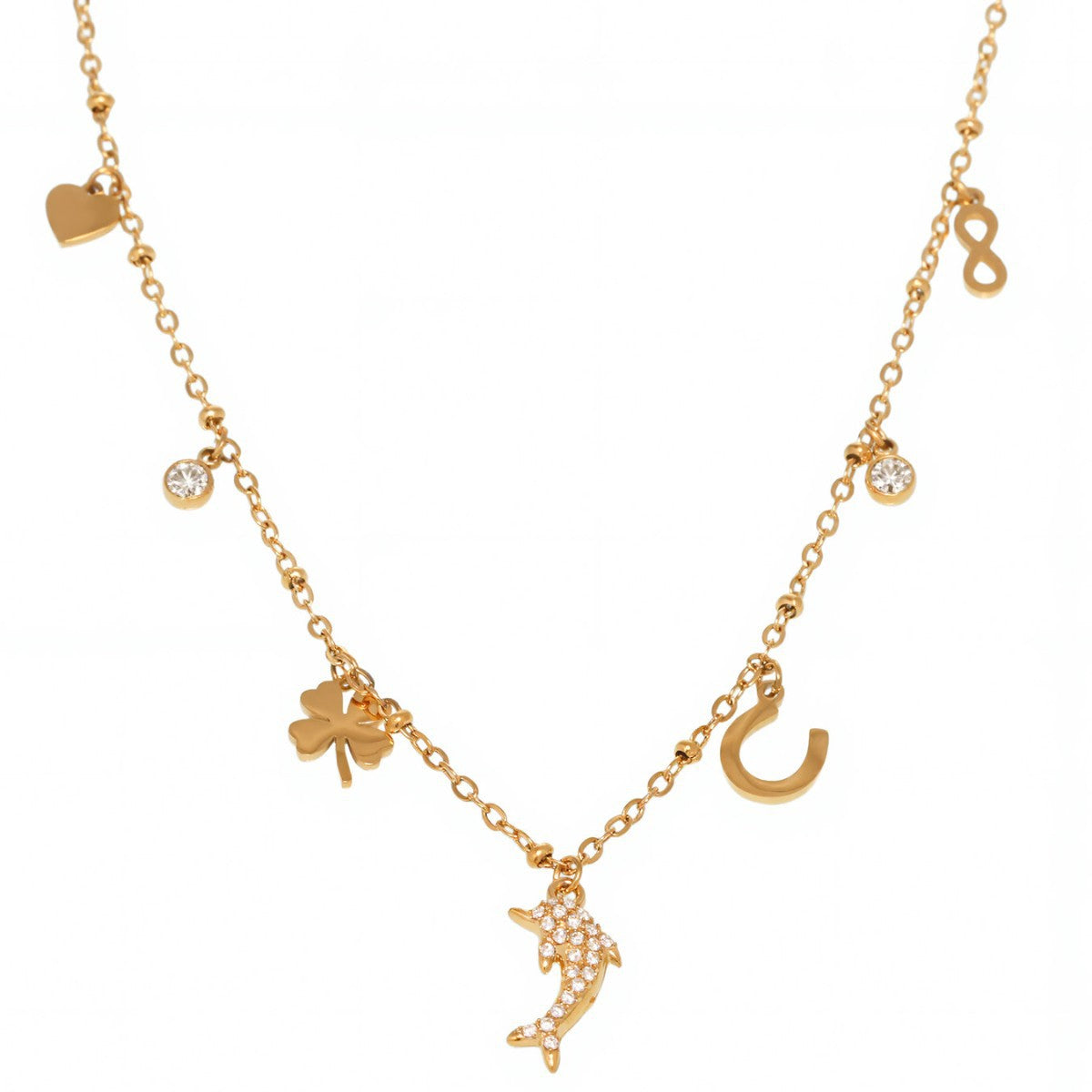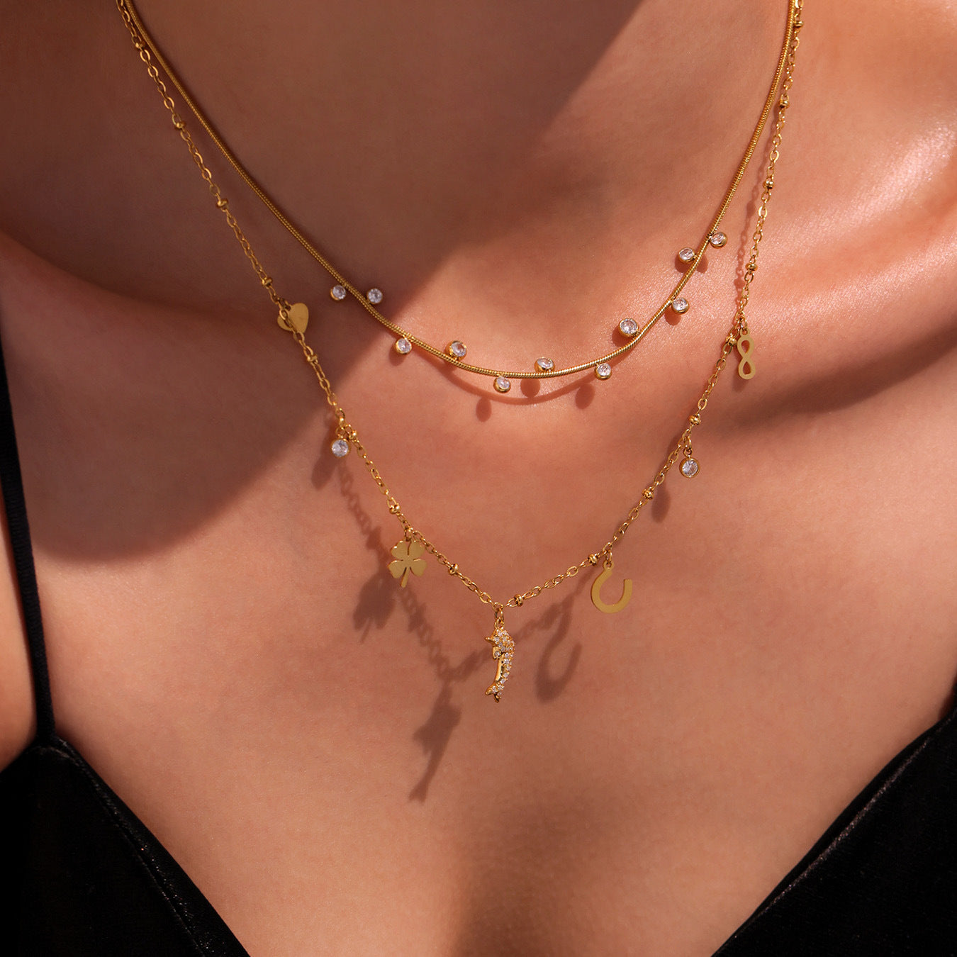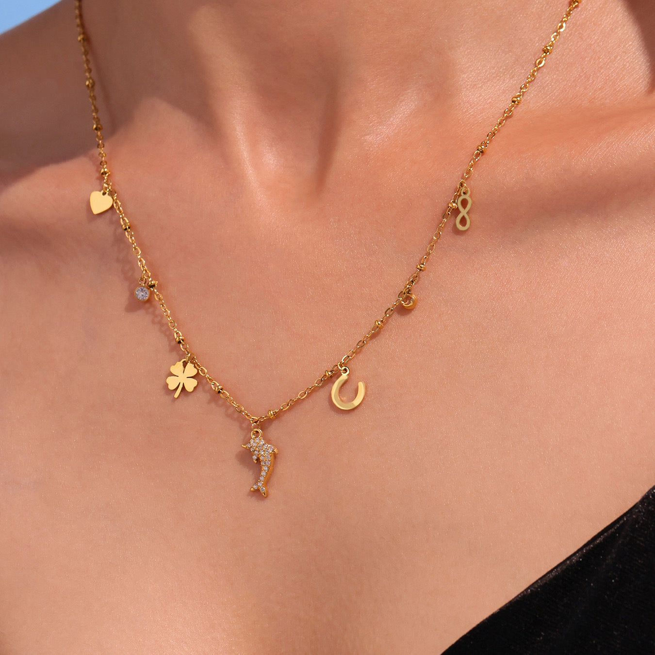 B廠【P1335】不鏽鋼5A鋯石小海豚8字多配件吊墜疊戴項鍊鍍18k真金飾品女 25.05-2