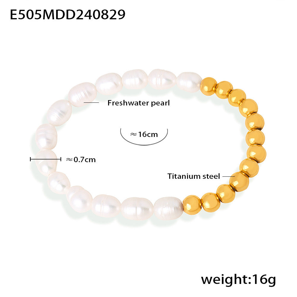 B廠【P1346】法式超閃綠白兩色玻璃石淡水珍珠項鍊棱角吊墜時尚珍珠鈦鋼手鍊女 24.09-1