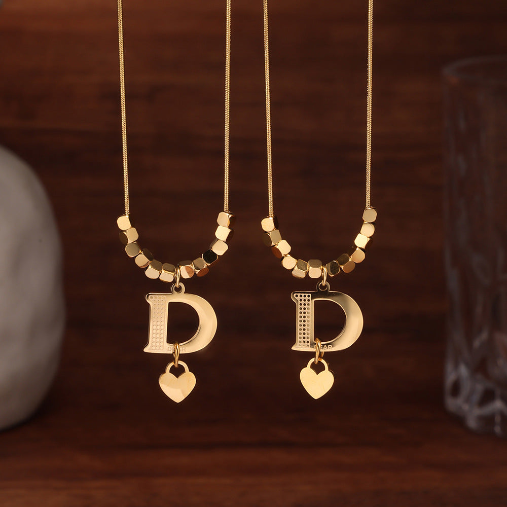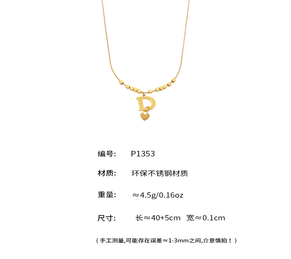 B廠【P1353】歐美不鏽鋼配件D字母吊墜高級感鎖骨項鍊鍍金18k真金飾 25.06-3