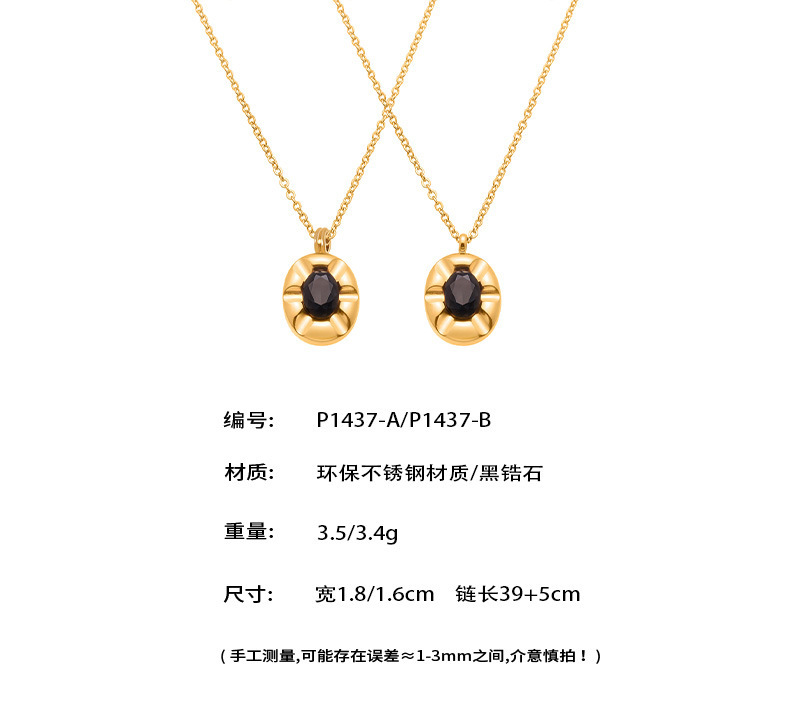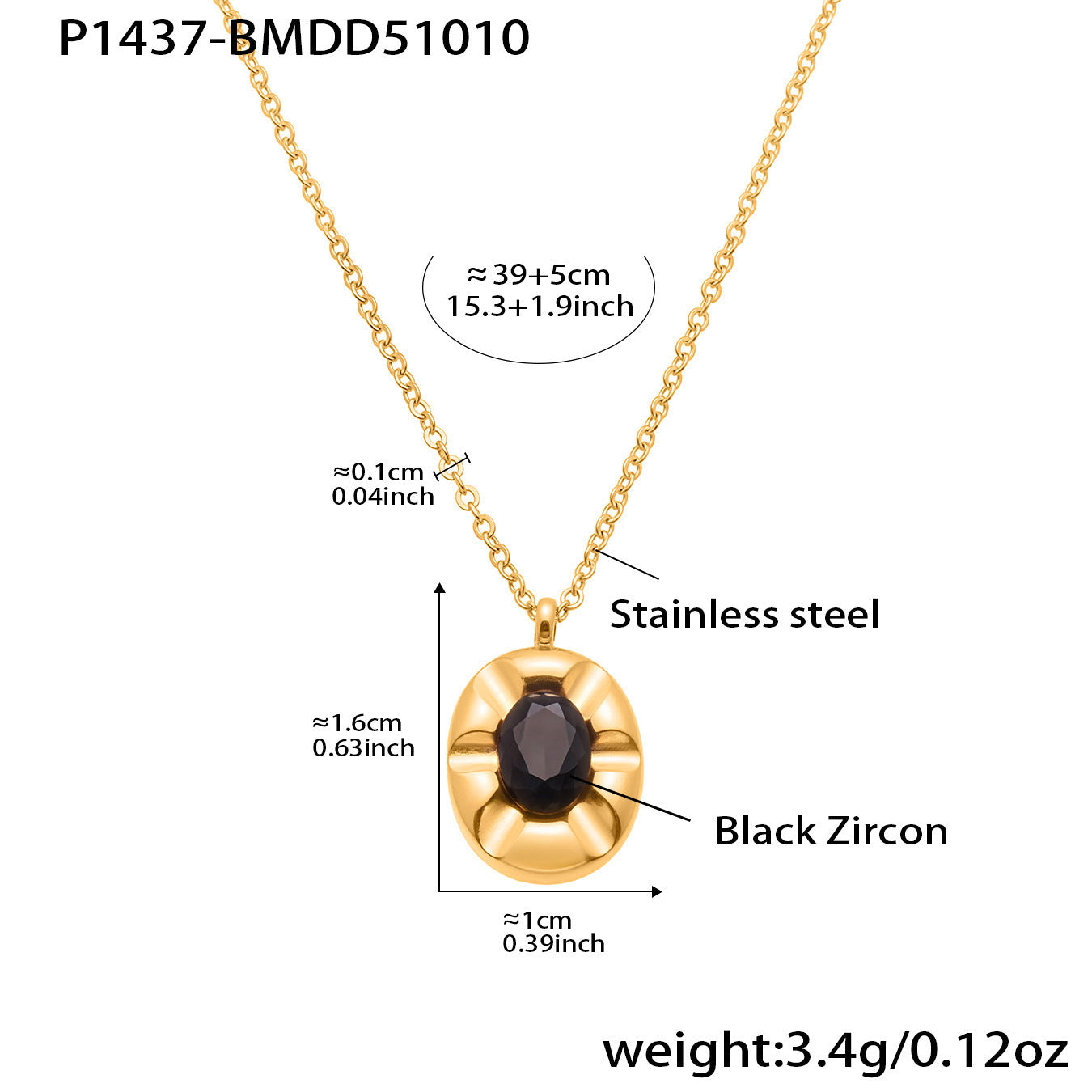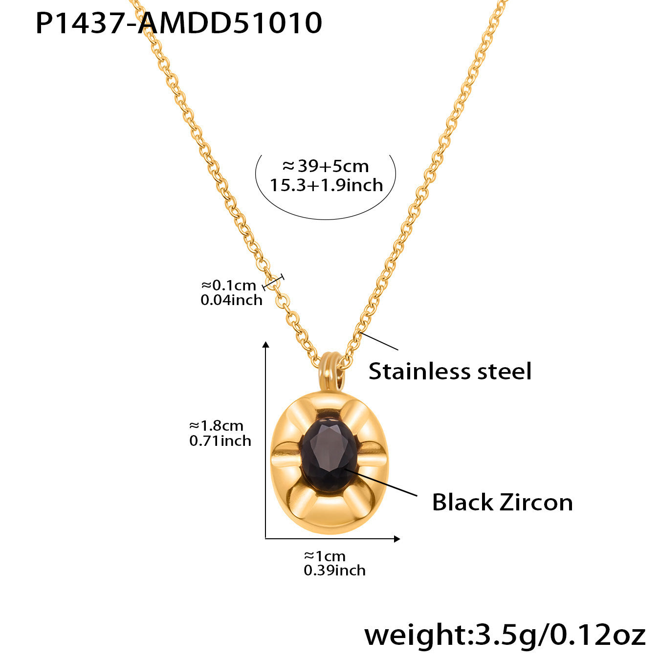 B廠【P1437】歐美新款簡約不鏽鋼幾何橢圓黑色鋯石吊墜項鍊時尚百搭飾品 25.10-3