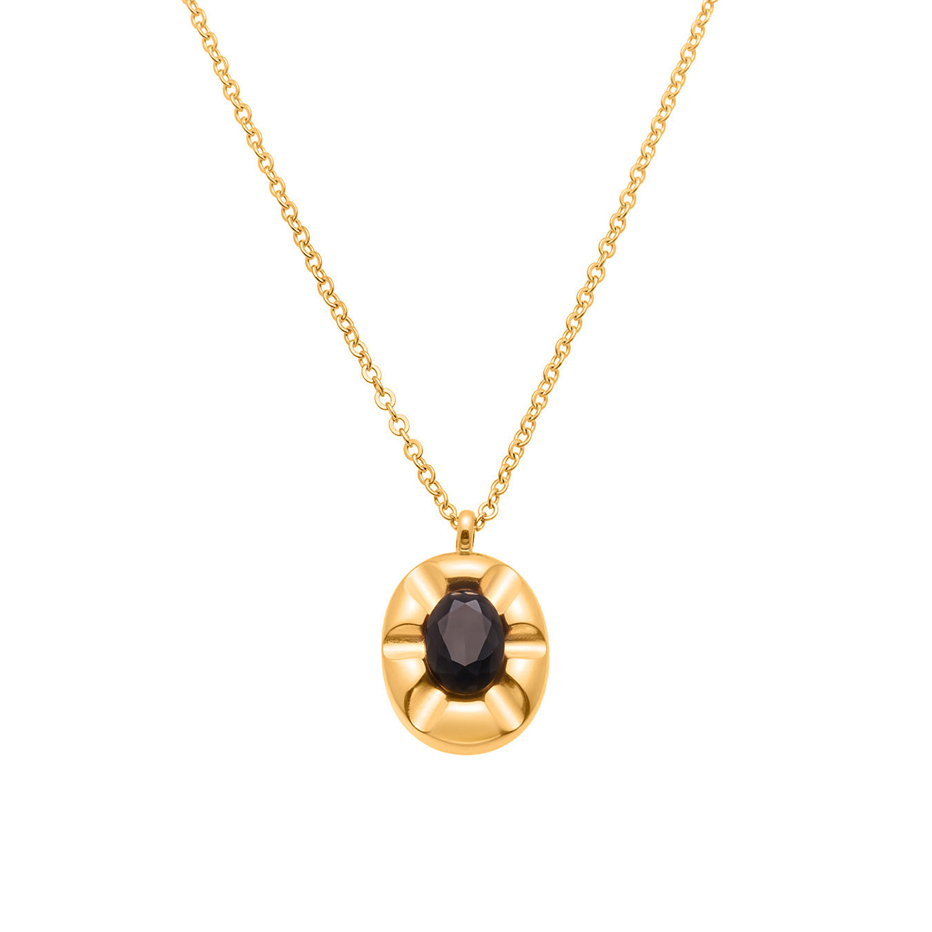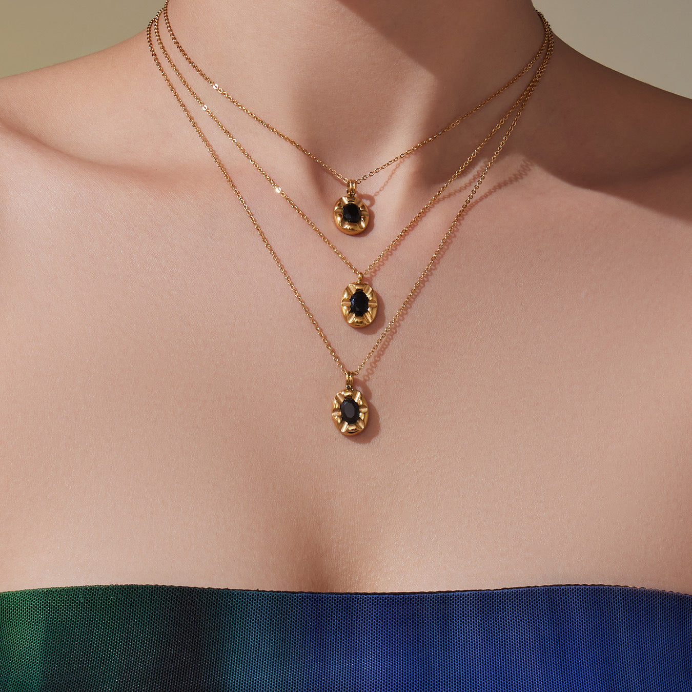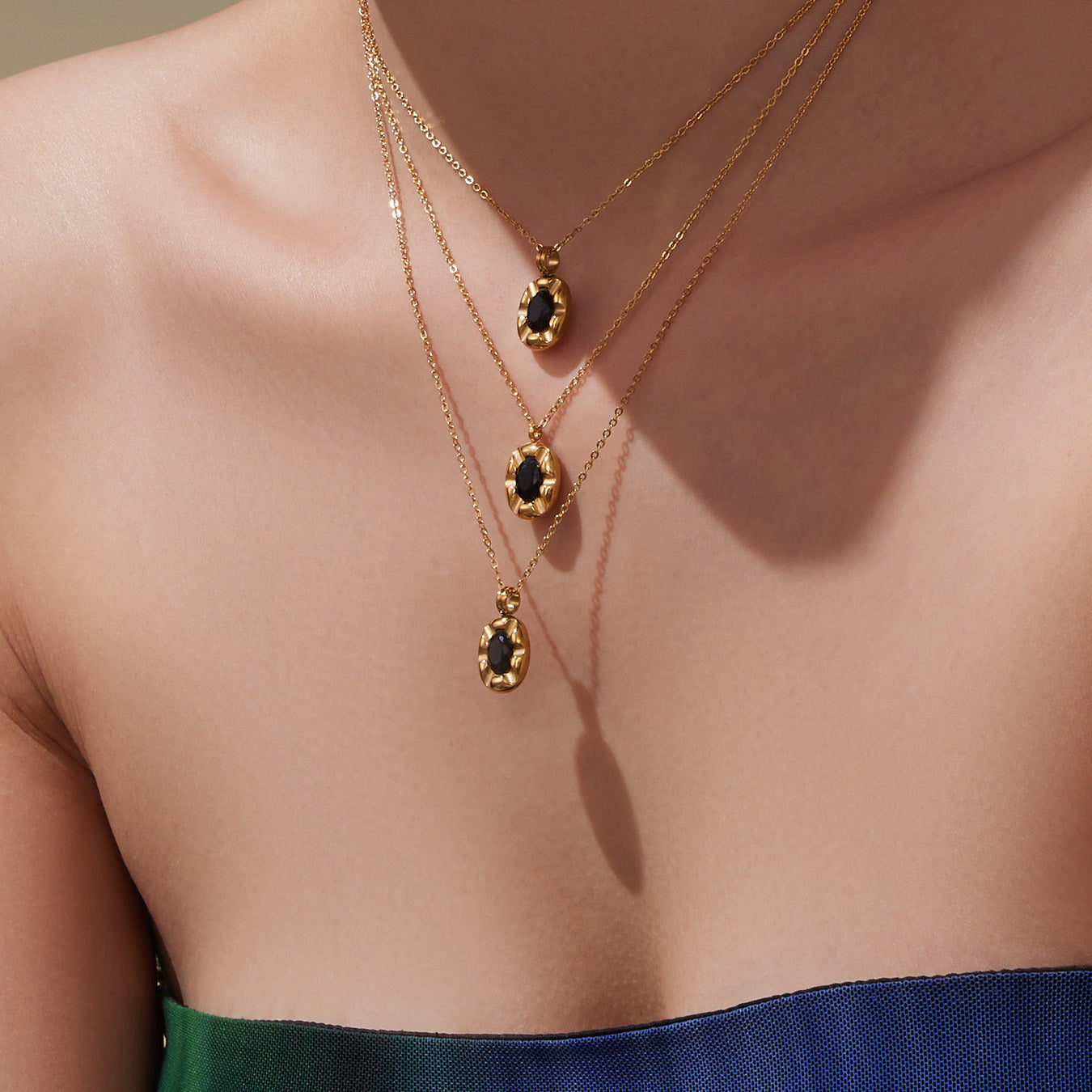 B廠【P1437】歐美新款簡約不鏽鋼幾何橢圓黑色鋯石吊墜項鍊時尚百搭飾品 25.10-3