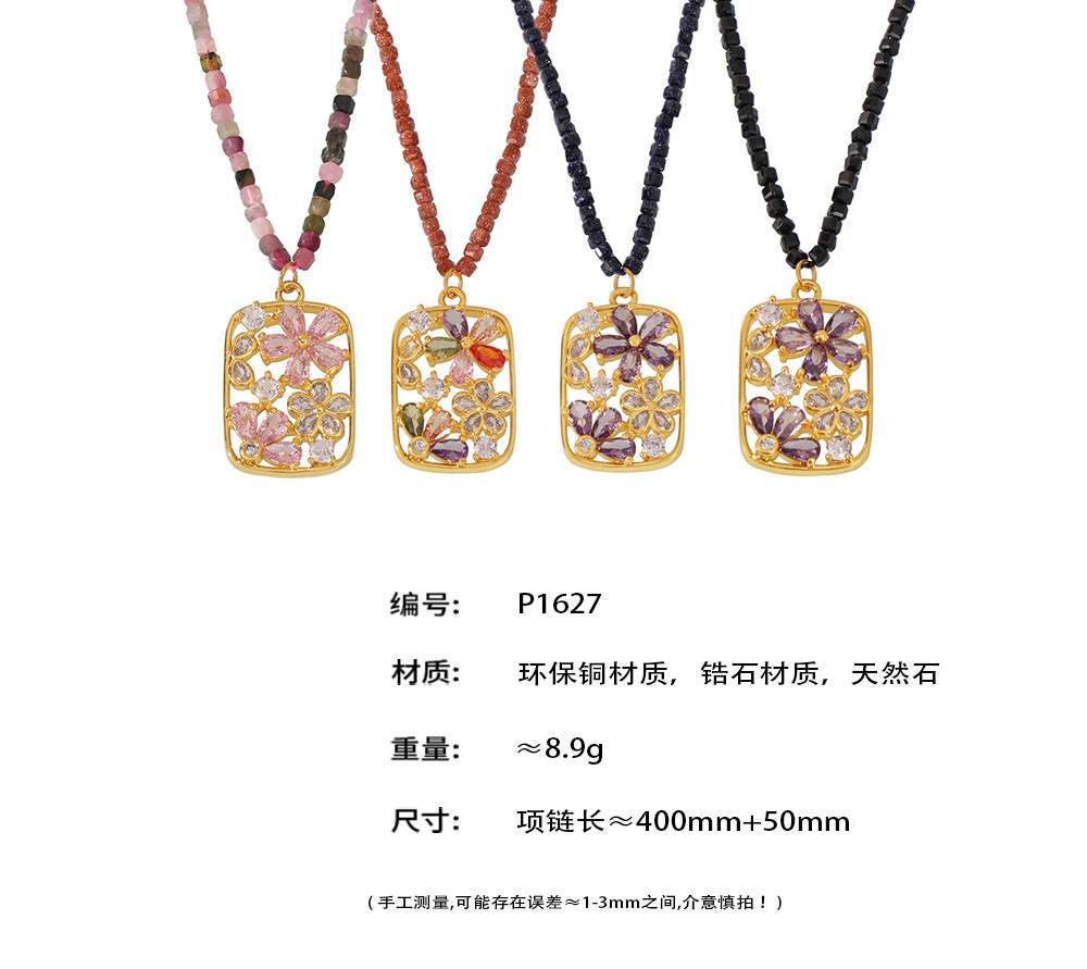 B廠【P1627】彩色鋯石小花銅吊墜天然石手工串珠方糖鎖骨項鍊奢華配件女 24.11-5