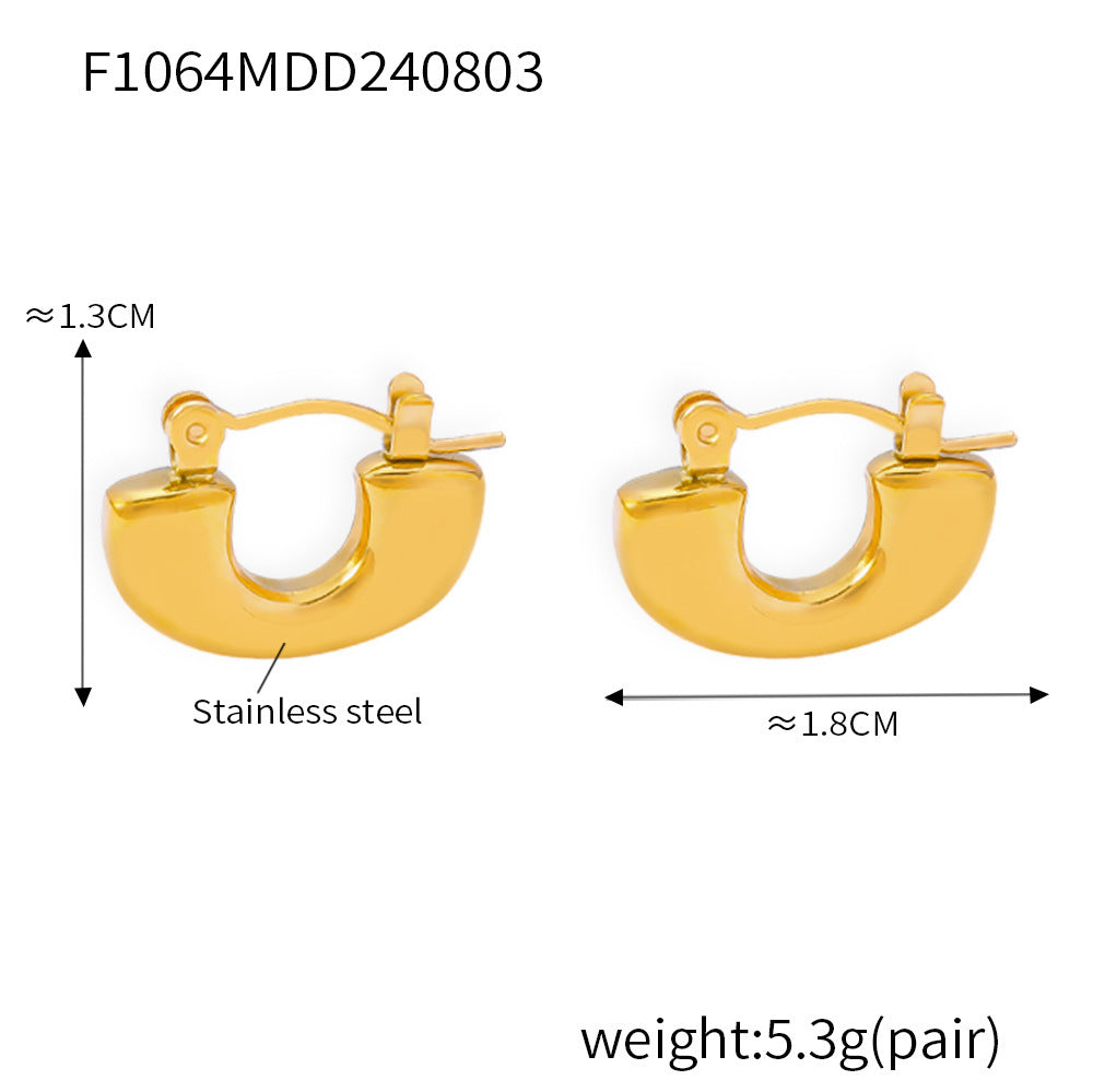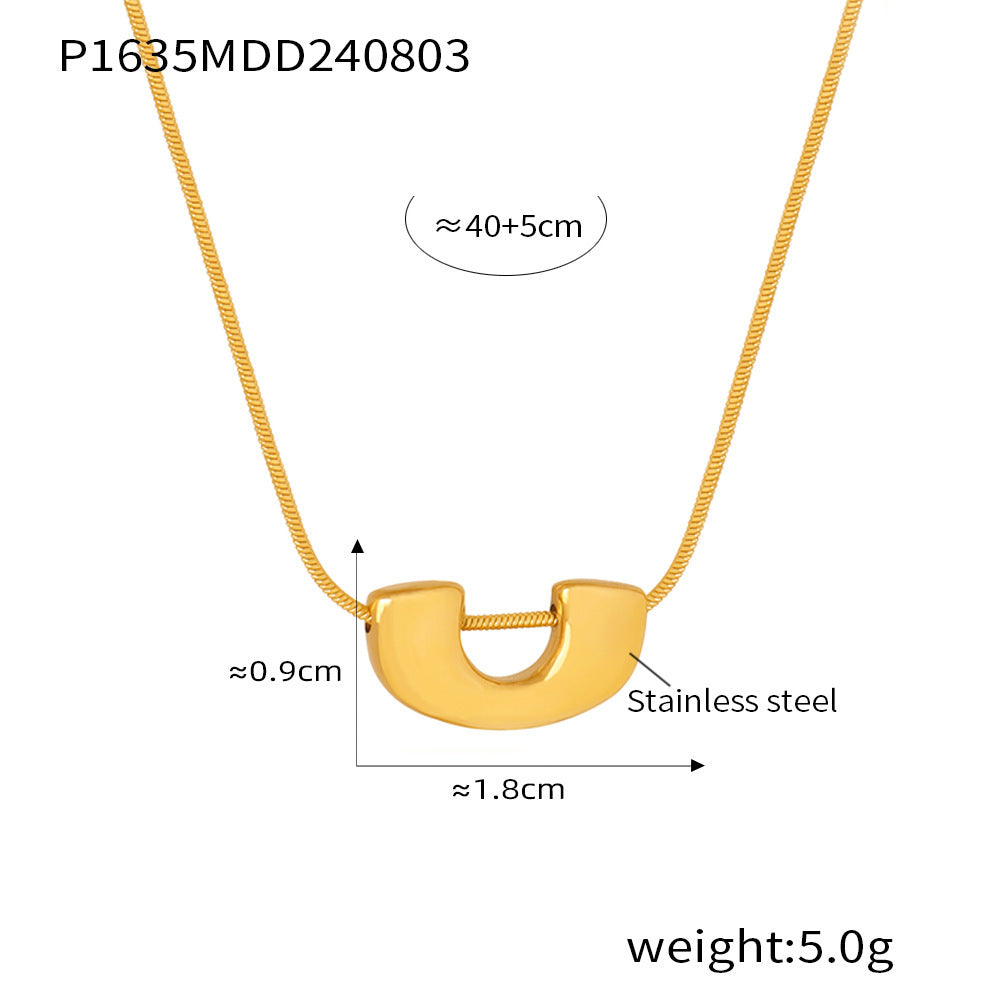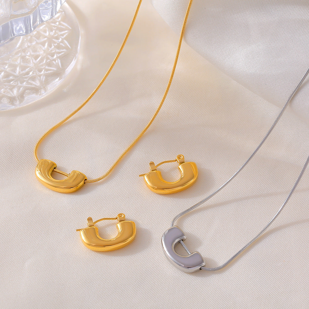 B廠【P1635】法式新款U形吊墜鎖骨項鍊耳環小眾幾何不鏽鋼鍍18k真金首飾套裝 24.08-2