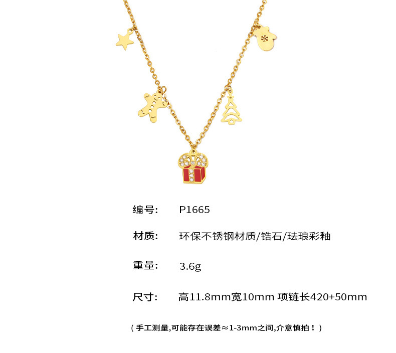B廠【P1665】 歐美琺瑯彩釉聖誕禮物幾何項鍊不鏽鋼鍍18K金手工鏈條飾品 24.11-5