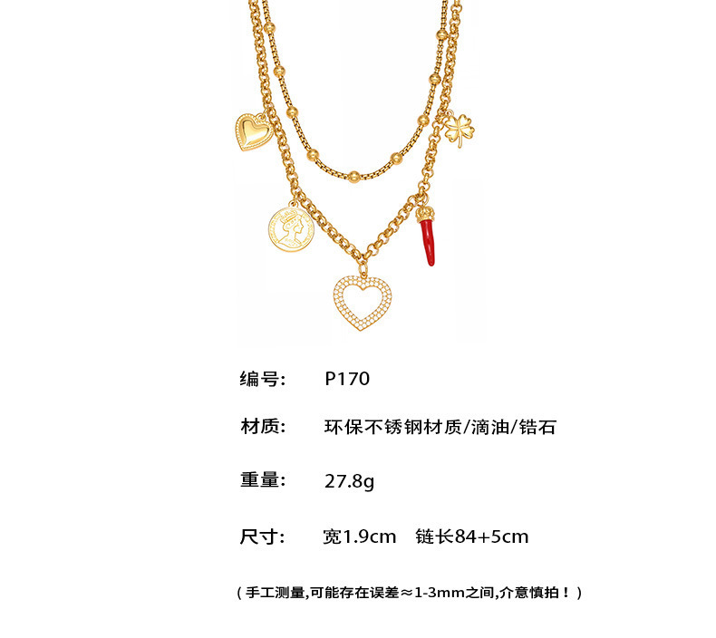 B廠【P170】不銹鋼雙層疊戴項鍊 ins愛心鋯石多吊墜歐美百搭輕奢鎖骨鏈 25.11-3