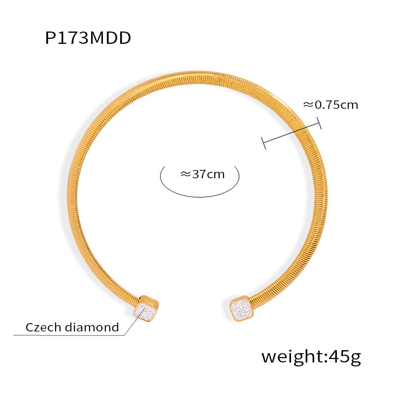 B廠【P173】歐美風雙頭鑲鑽C形開口項圈時尚設計感刀片形頸圈鈦鋼鍍18k金項圈 24.01-3