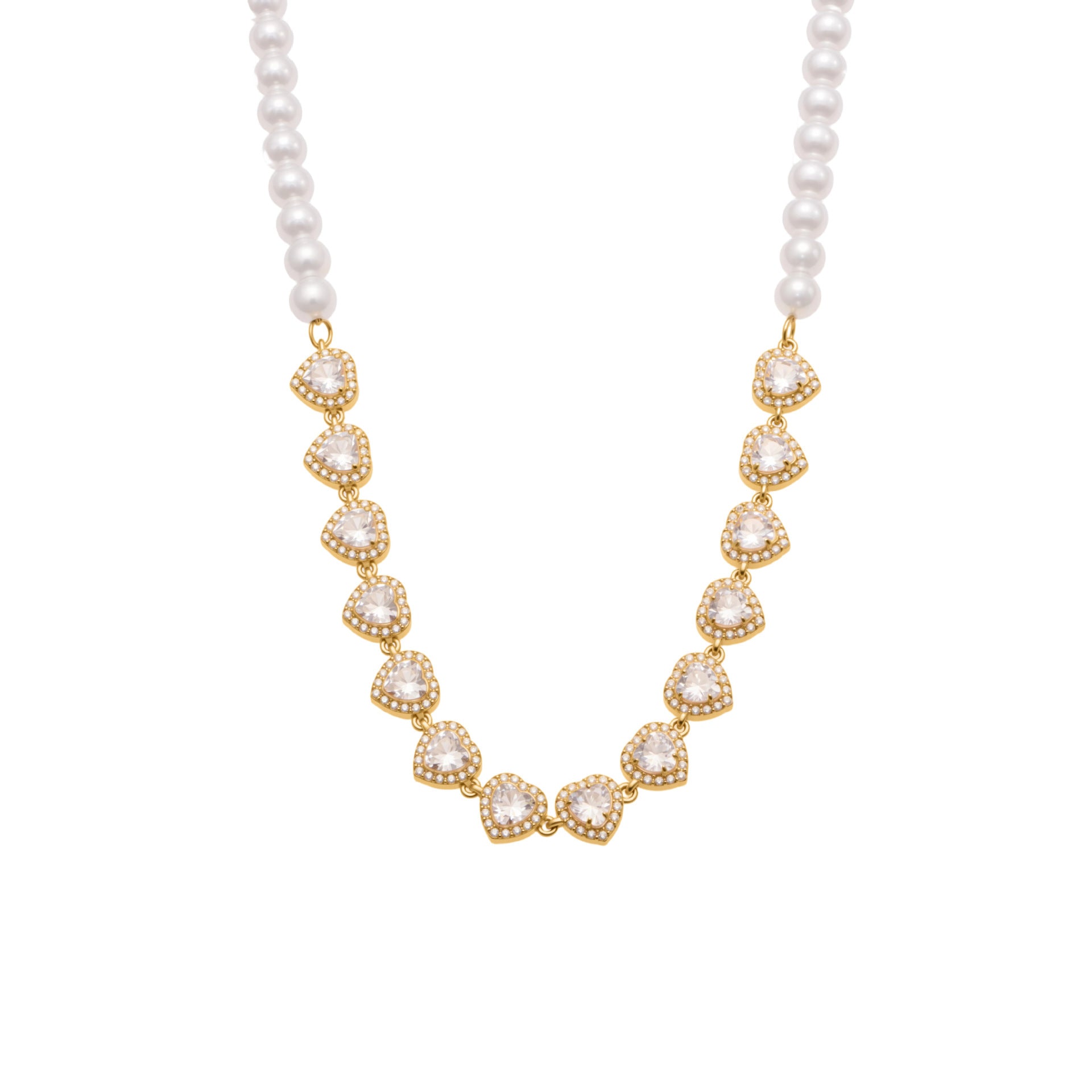 B廠【P1735】施家貝珠串珠愛心5A鋯石手工鍊項鍊不鏽鋼鍍18k真金不掉色 25.10-4