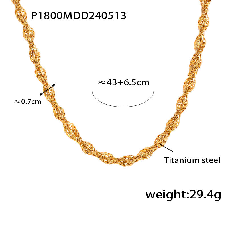 B廠【P1800】歐美跨境網紅同款鈦鋼嘻哈小眾麻花鏈18K金輕奢大氣設計項鍊 24.05-3