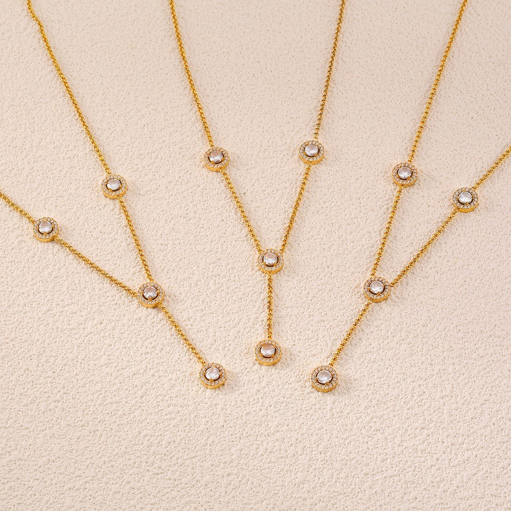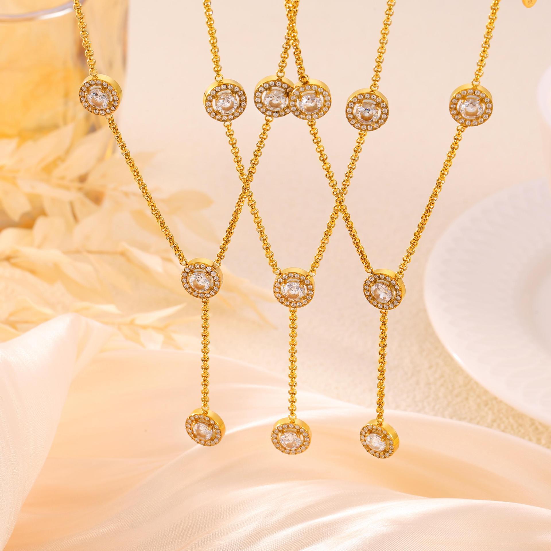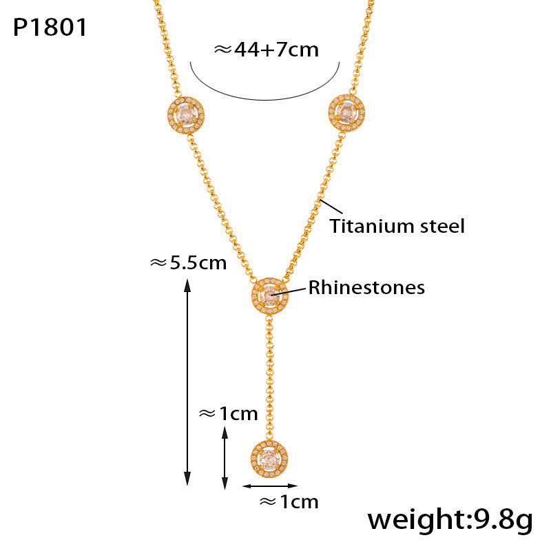 B廠【P1801】韓版簡約時尚長款流蘇鑲鑽圓圈鏈條項鍊鈦鋼金屬百搭飾品鎖骨鍊女 24.05-3