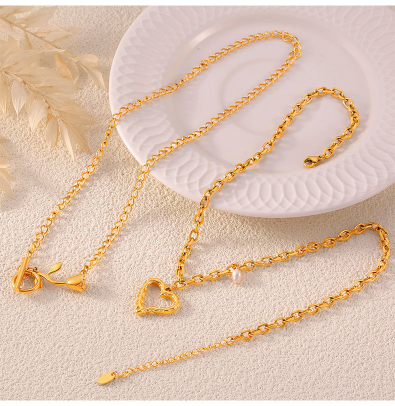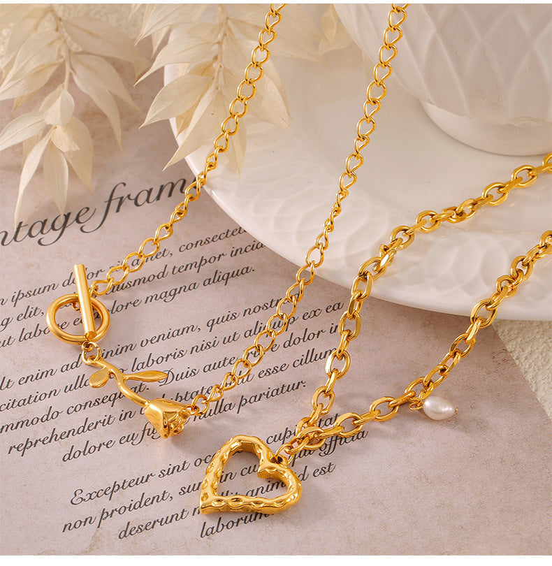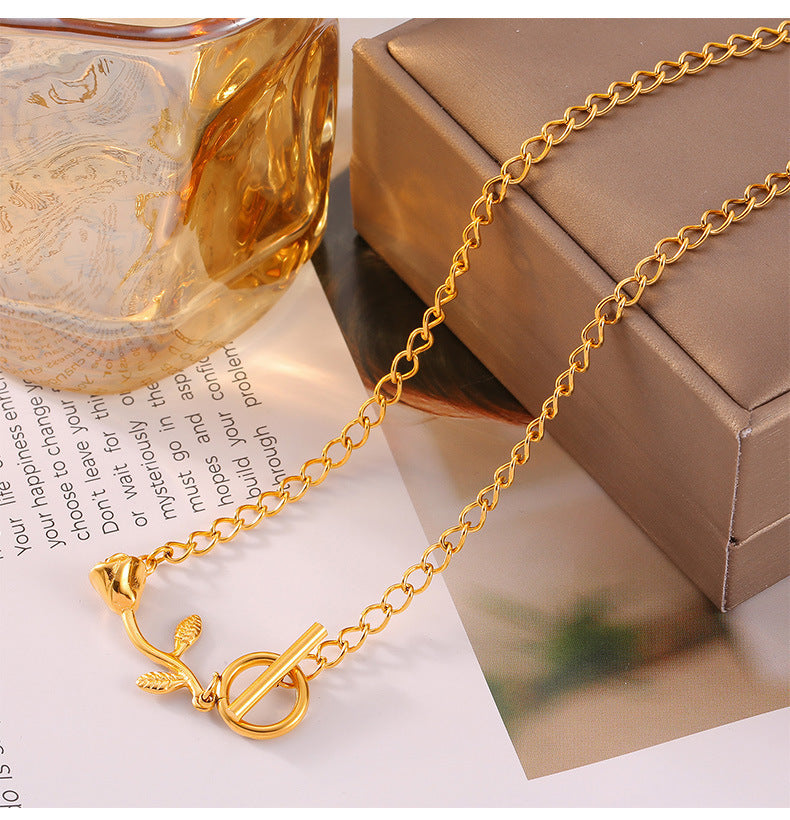 B廠【P1804-5】跨國情人節愛心鈦鋼保色簡約項鍊小眾INS風設計玫瑰花吊墜飾品女 24.05-3