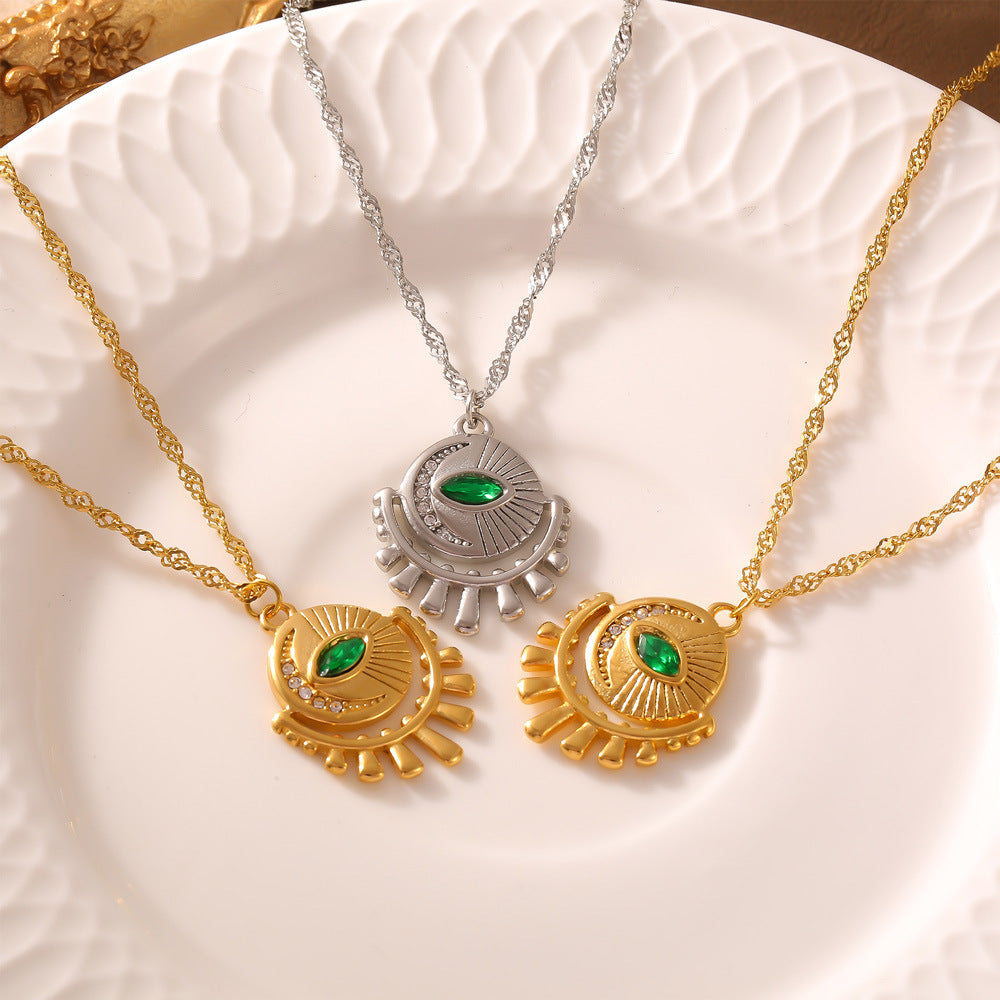 B廠【P1826】法式復古吊墜女小眾設計項鍊眼睛鑲嵌鋯石鈦鋼鍍金不掉色輕奢飾品 24.06-1