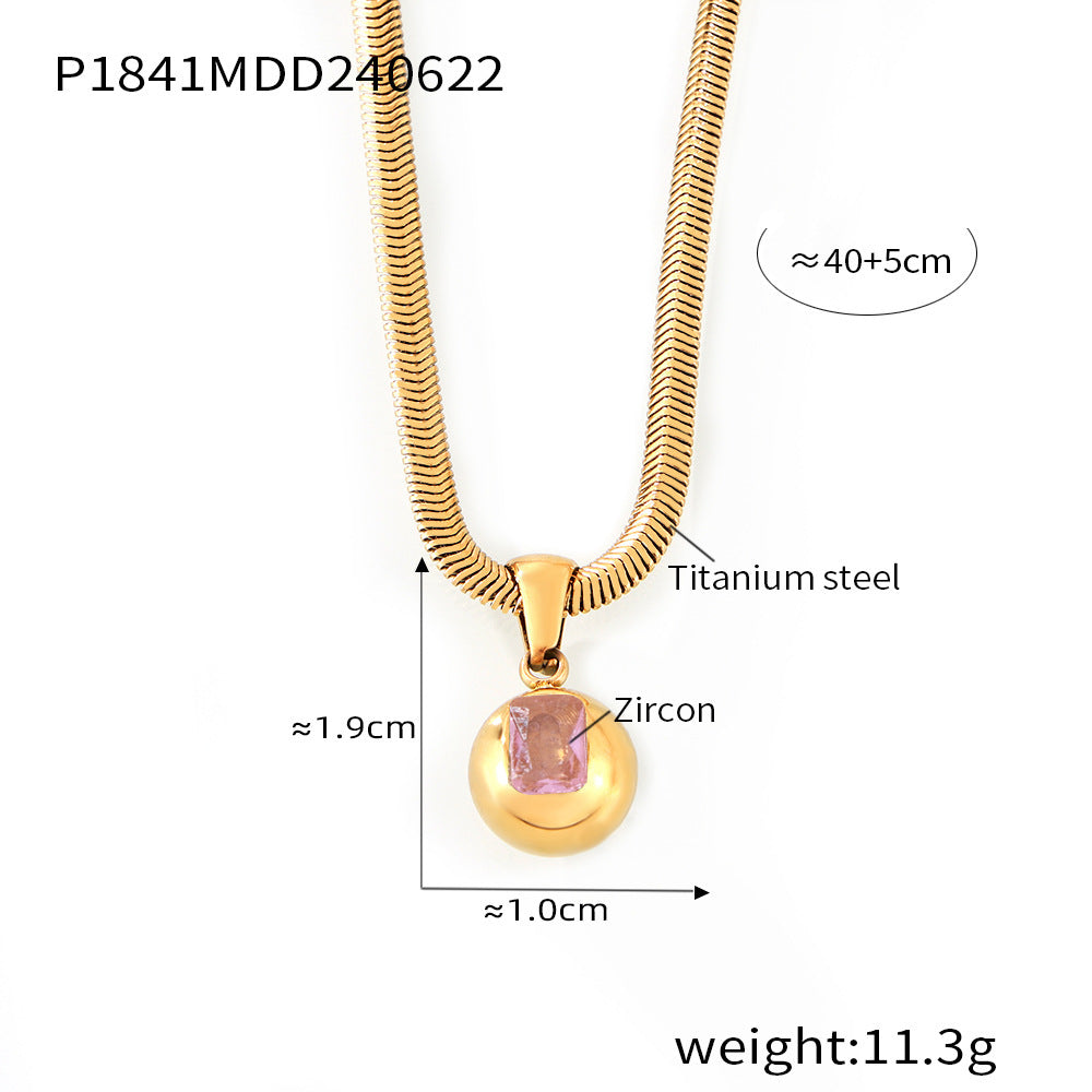 B廠【P1841】歐美時尚鑲嵌鋯石吊墜鈦鋼鍍18k真金幾何圓項鍊INS部落客同款鎖骨鏈 24.06-4