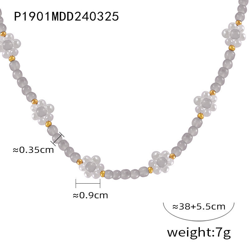 B廠【P1901】韓國風氣質優雅手工串珠彩色天然石項鍊貝珠花朵編織配件頸鍊飾品 24.06-4