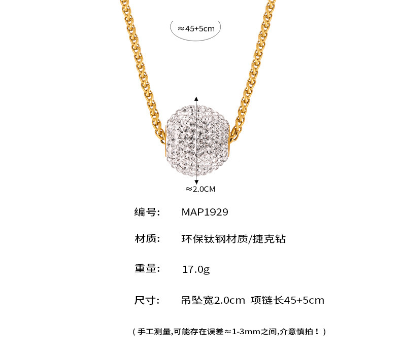 B廠【P1929】日韓小眾時尚鑲鑽圓球吊墜蕭邦鈦鋼項鍊女輕奢簡約鎖骨鏈首飾 24.04-2