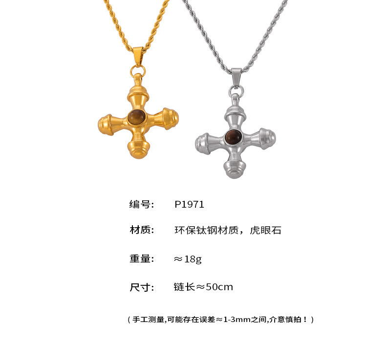 B廠【P1971】歐美復古時尚輕奢虎眼石十字架吊墜鎖骨鏈小眾ins金色新項鍊女 24.05-1