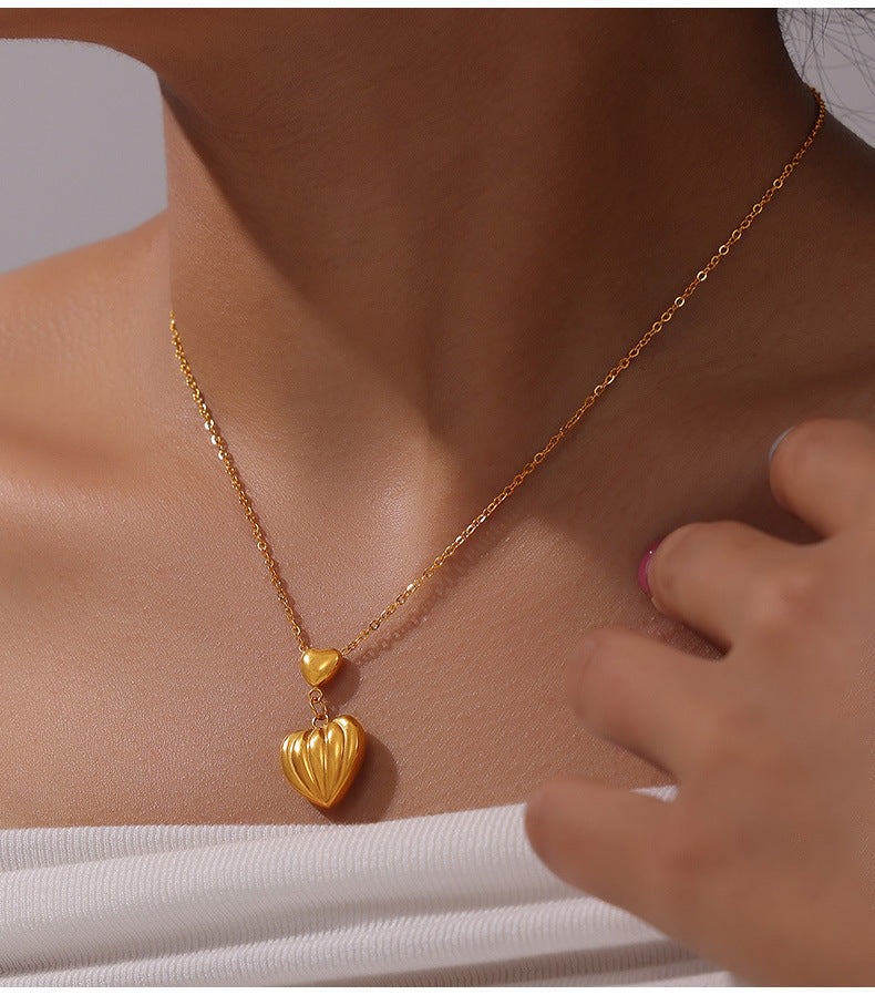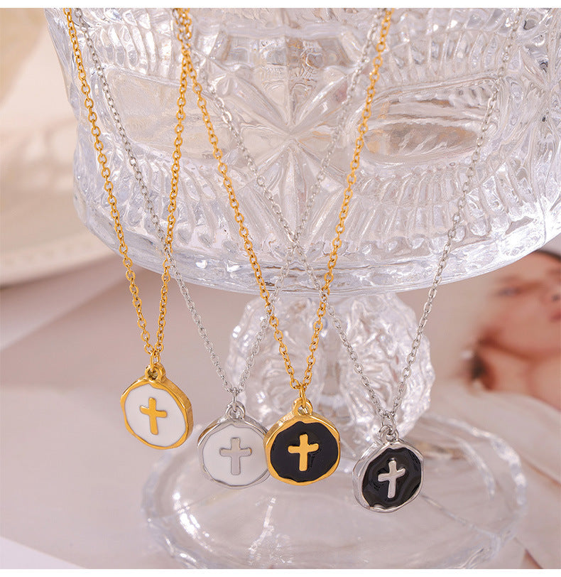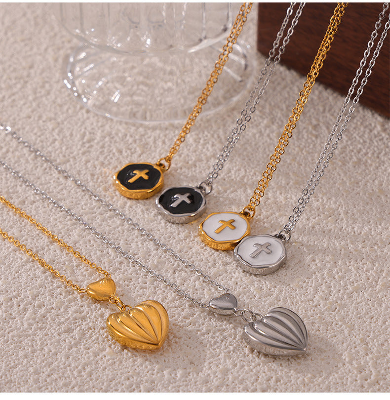 B廠【P1978-9】歐美跨境桃心流蘇吊墜項鍊小眾個性設計十字架鈦鋼首飾套裝 24.05-1