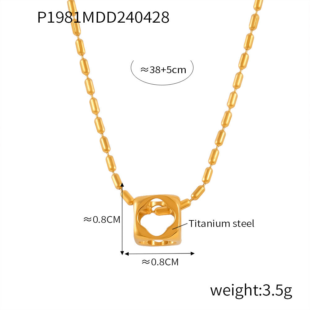 B廠【P1981】夏季旅遊度假ins風百搭小眾米珠鏈時尚簡約方形鏤空鈦鋼吊墜項鍊 24.05-2