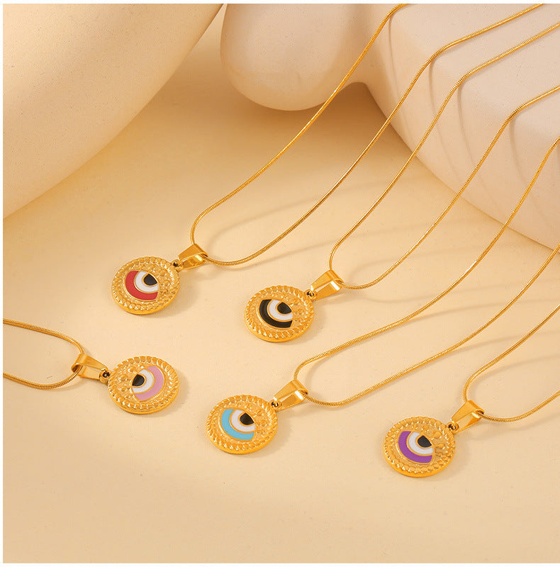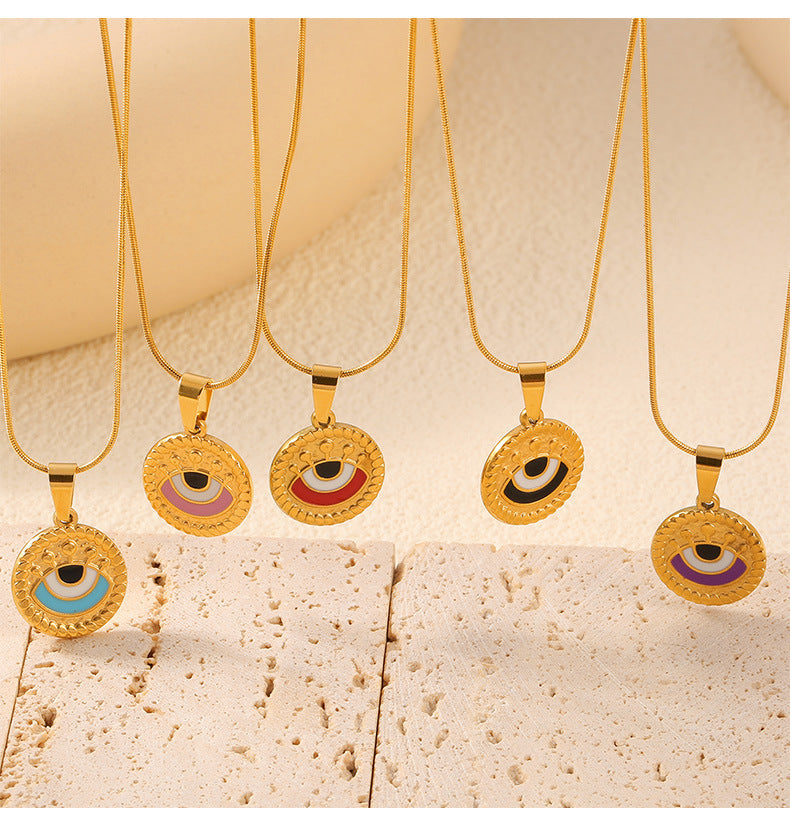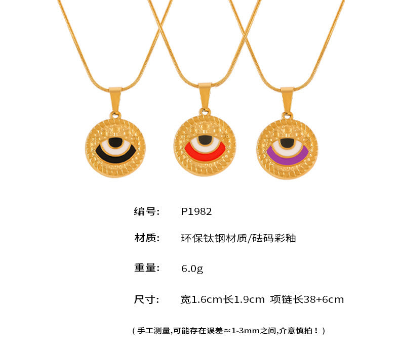B廠【P1982】歐美時尚個性復古滴油眼睛鈦鋼項鍊女圓形設計惡魔之眼吊墜鎖骨鏈 24.05-1