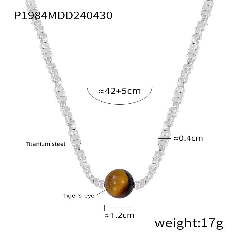 B廠【P1984】簡約碎銀子虎眼石鈦鋼項鍊輕奢小眾氣質頸鍊ins鎖骨鏈韓版冷淡風 24.05-2