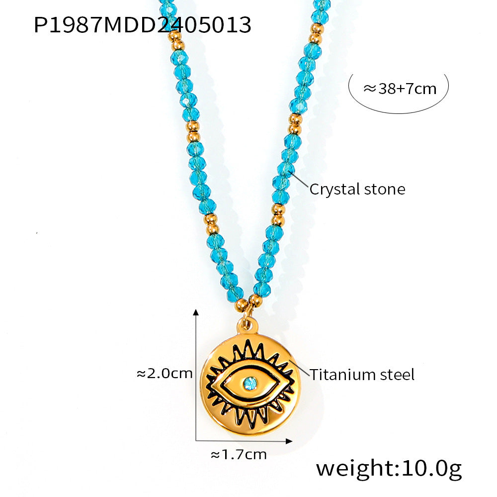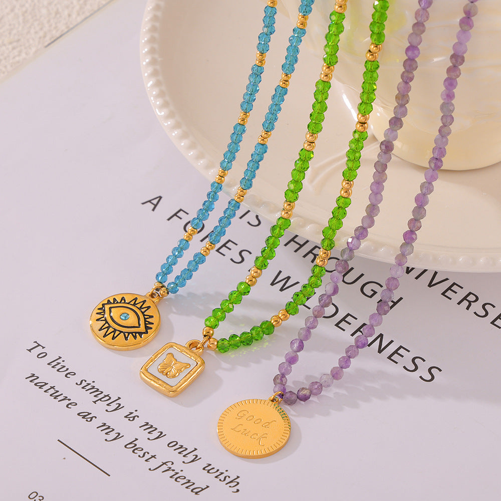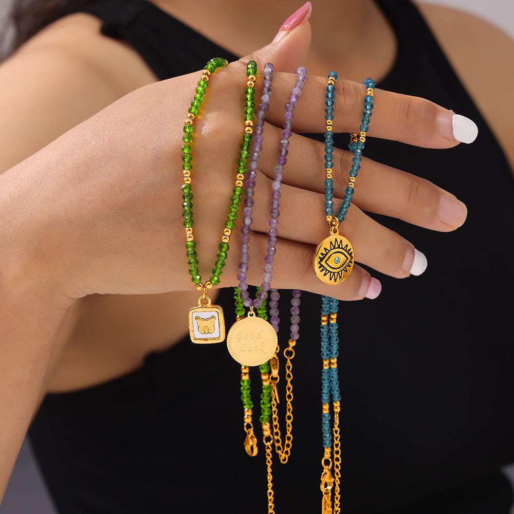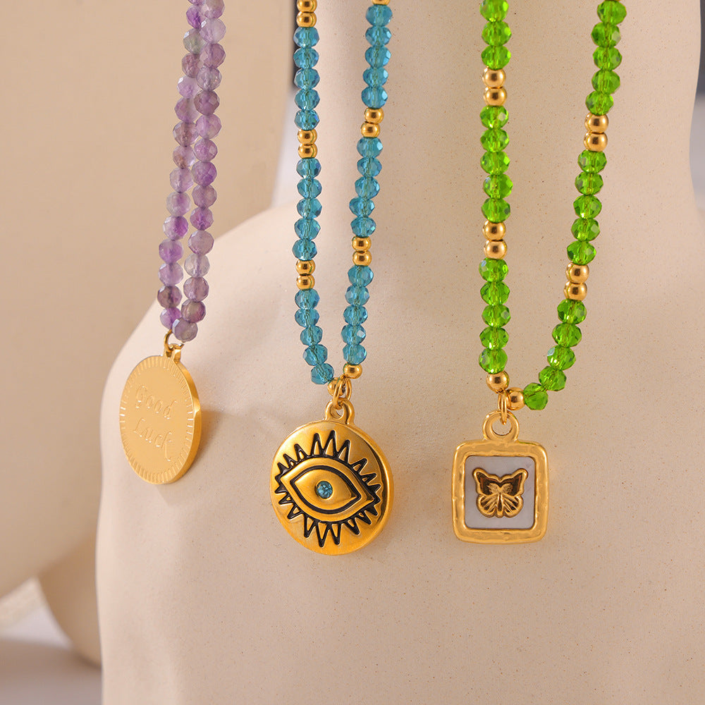 B廠【P1987-9】跨國多巴胺個性設計天然水晶手工串珠鈦鋼眼睛蝴蝶幾何吊墜項鍊女 24.05-3