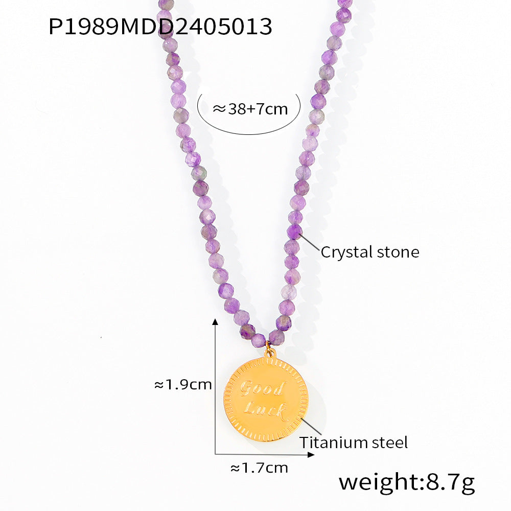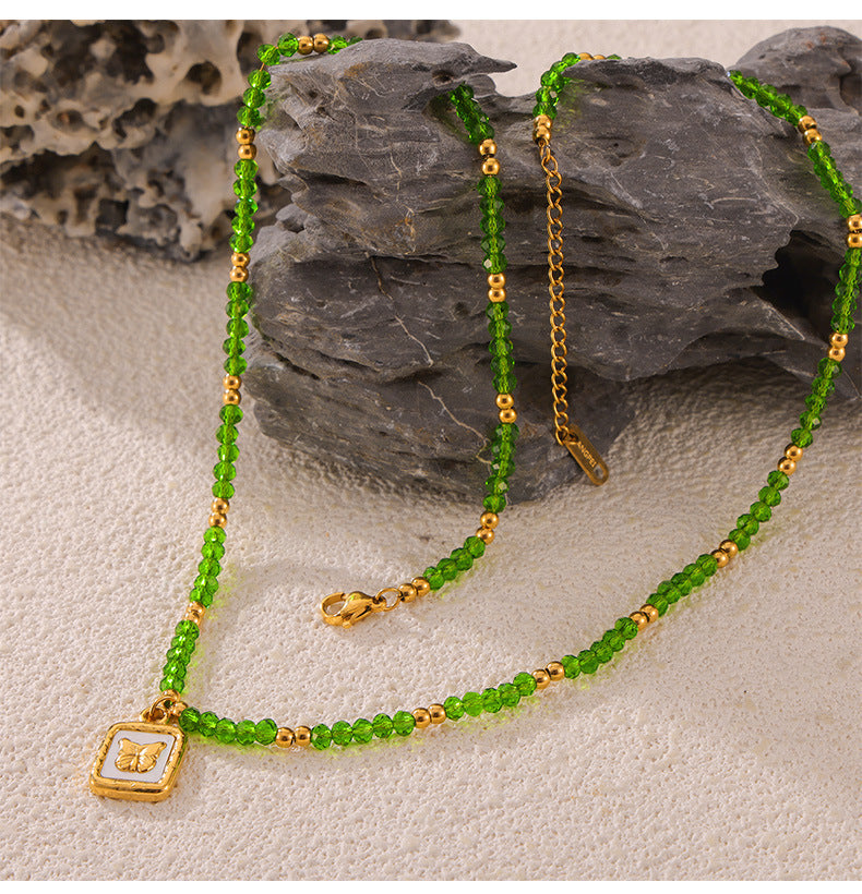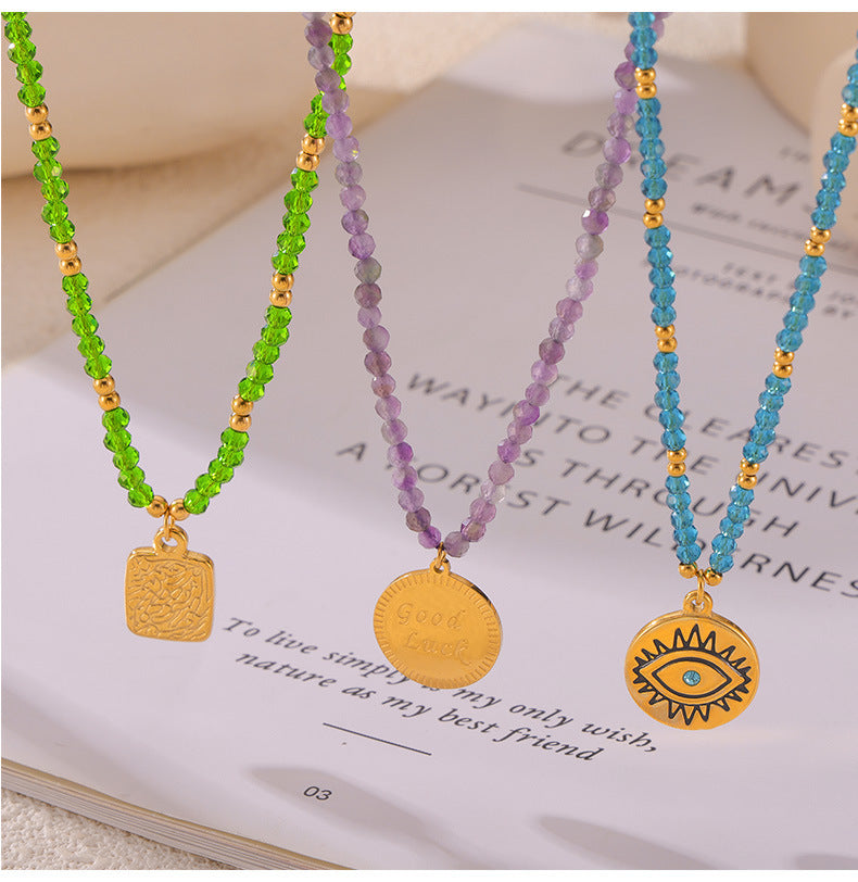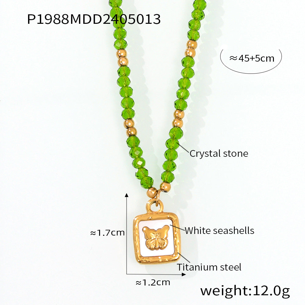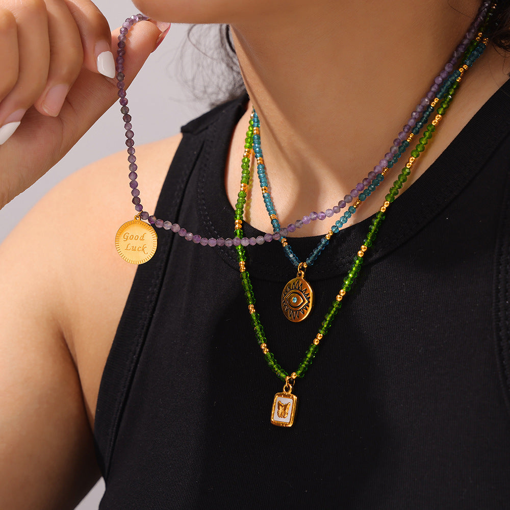 B廠【P1987-9】跨國多巴胺個性設計天然水晶手工串珠鈦鋼眼睛蝴蝶幾何吊墜項鍊女 24.05-3