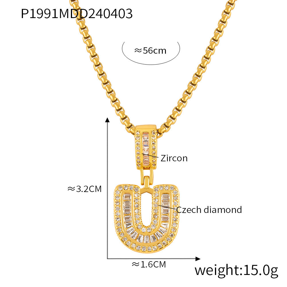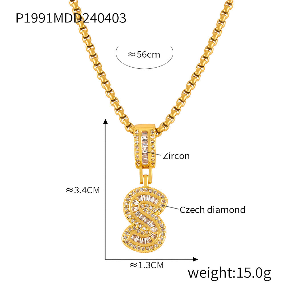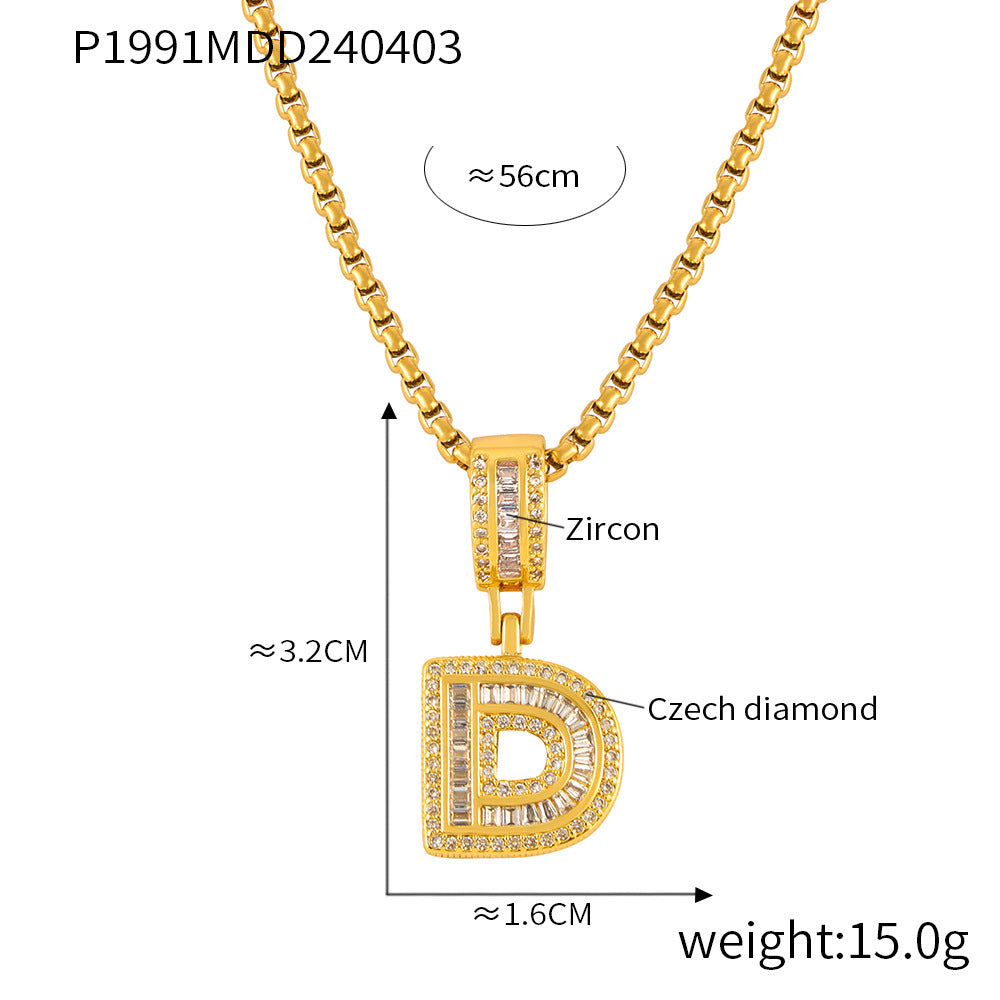 B廠【P1991】INS小眾簡約字母鑲鑽吊墜歐美長款盒子鏈鈦鋼鍍18k金項鍊飾品 24.04-2