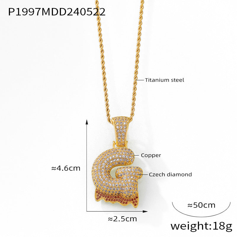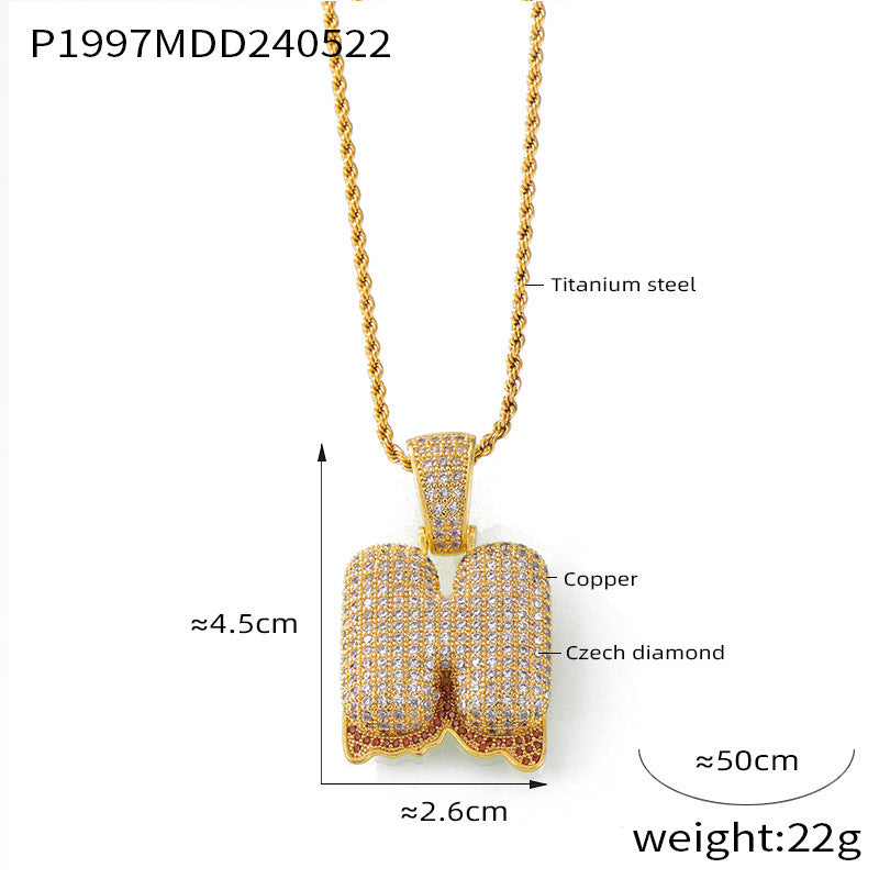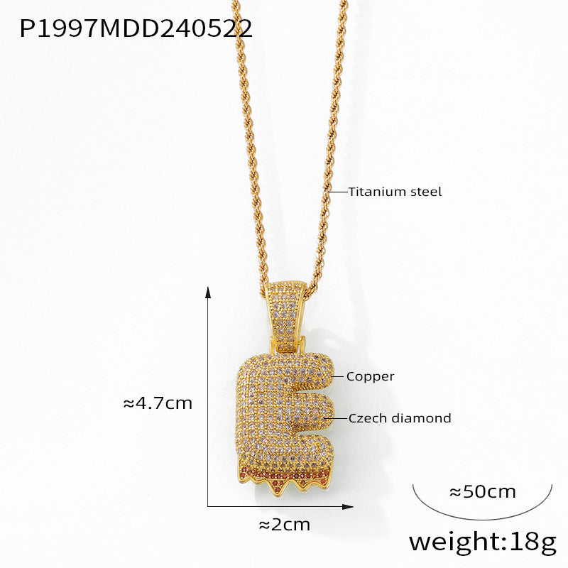 B廠【P1997】歐美優雅氣質新項鍊女個性設計26字母鑲鑽銅吊墜優質鈦鋼鎖骨鏈 24.05-5