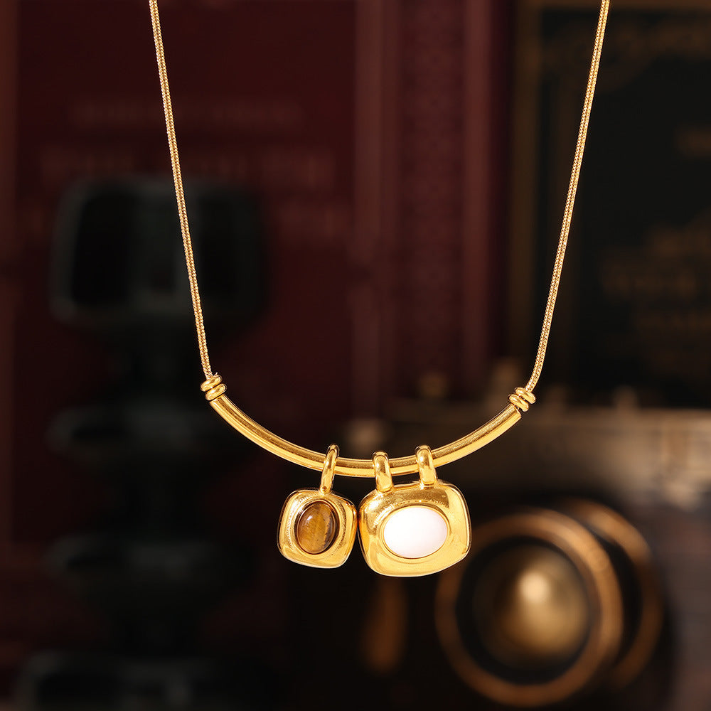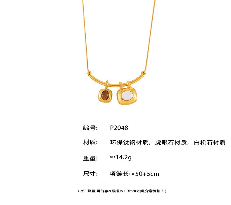 B廠【P2048】法式復古雙色不對稱方塊吊墜項鍊18k鍍真金輕盈感極簡風鈦鋼飾品 24.08-3