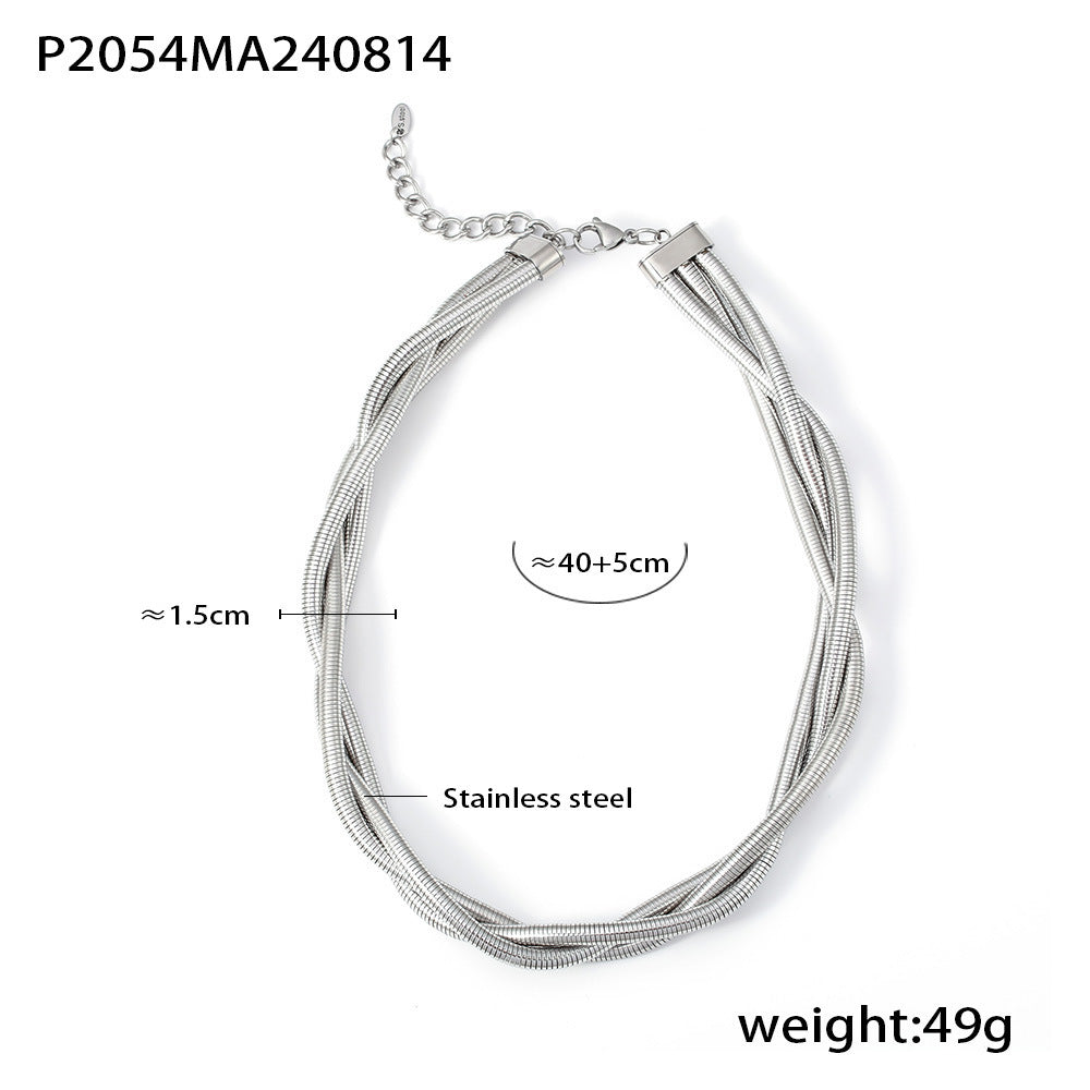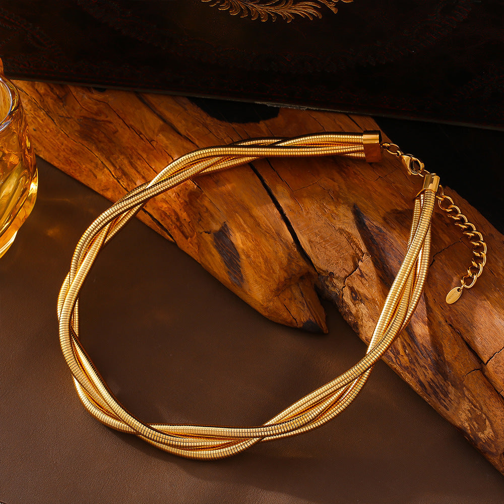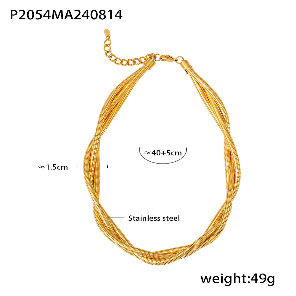 B廠【P2054】歐美風重工金色三線纏繞項圈頸鍊輕奢感不鏽鋼鍍18k真金龐克項鍊 24.08-3