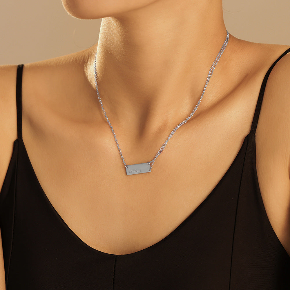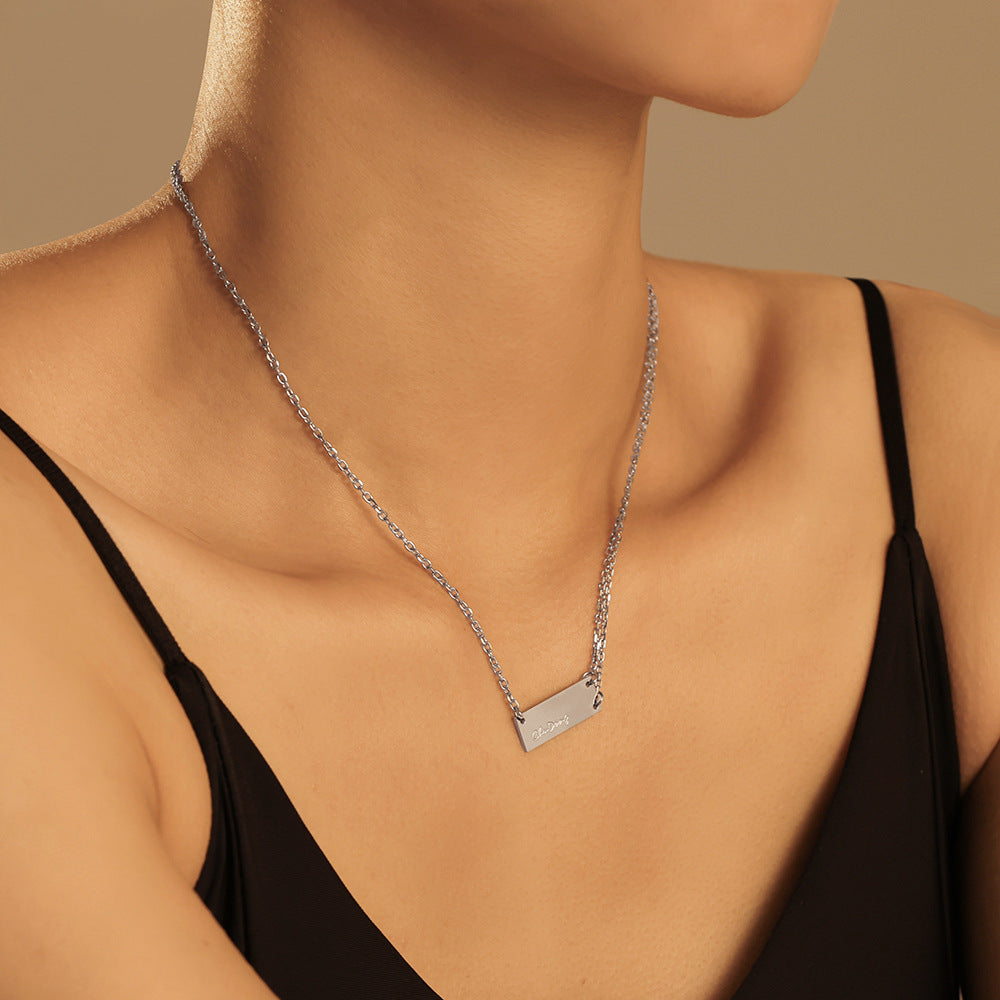 B廠【P2065】跨國飾品簡約幾何長方形雕刻字母吊墜項鍊鈦鋼小眾冷淡風男女同款 24.10-1