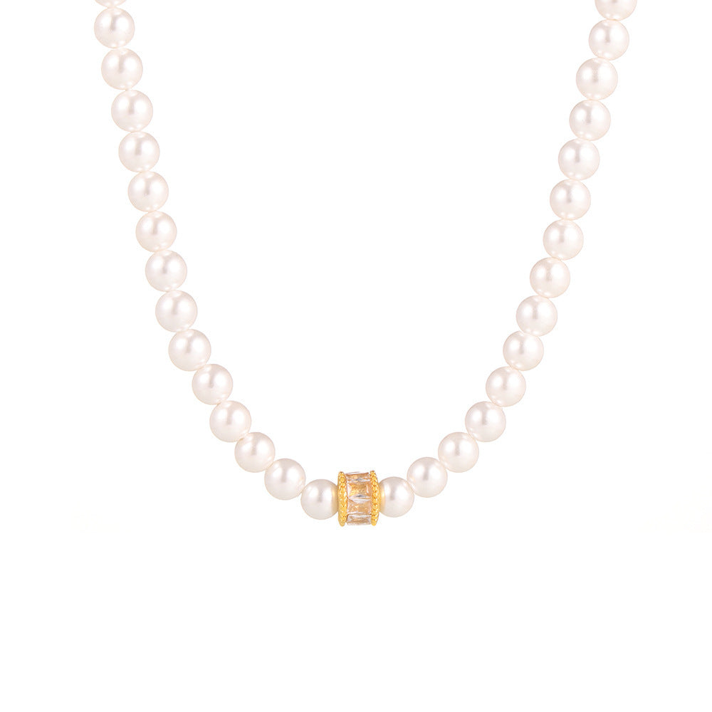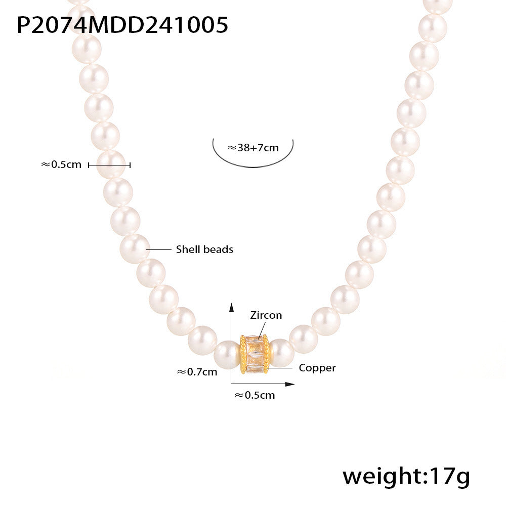 B廠【P2074】 INS風貝珠銅質鋯石吊墜手工串珠鎖骨氣質項鍊首飾現貨批發 24.10-2